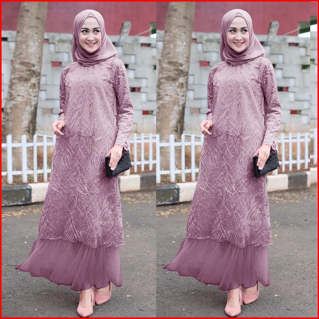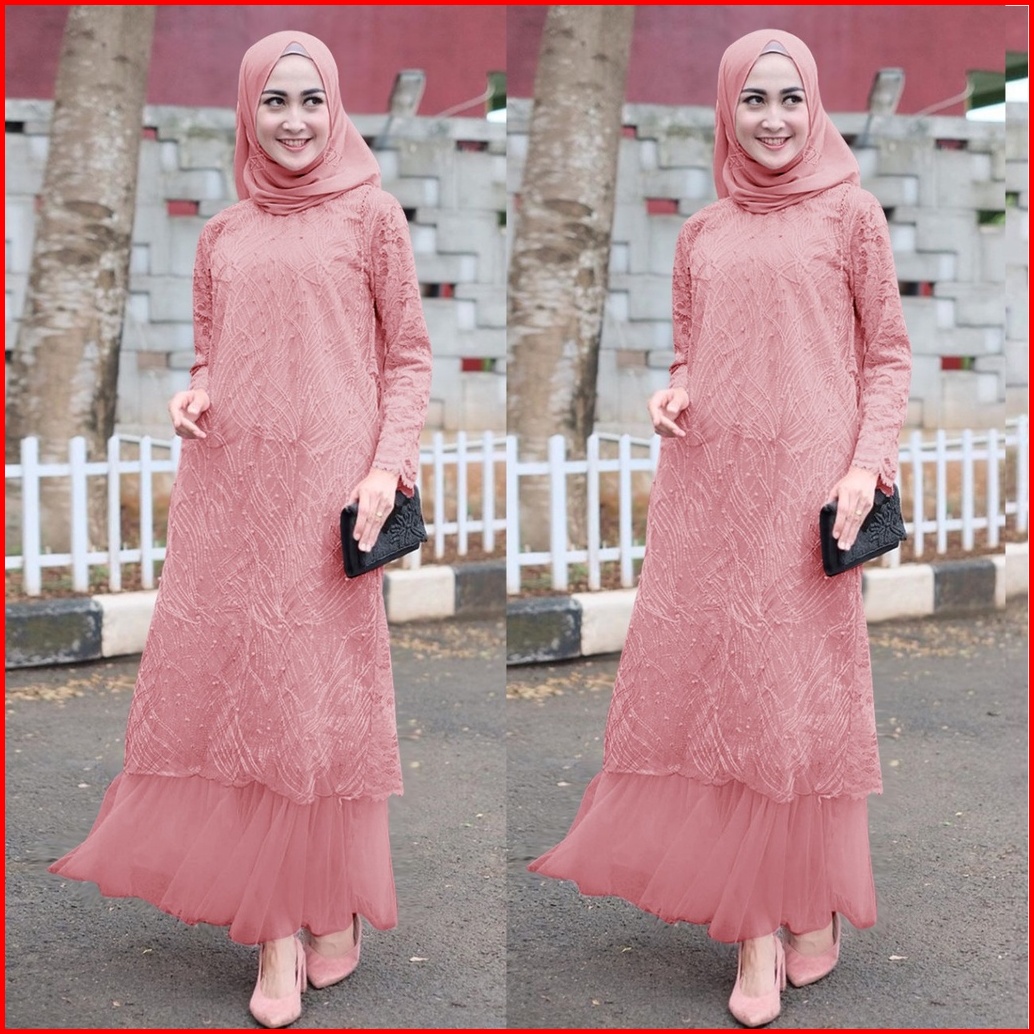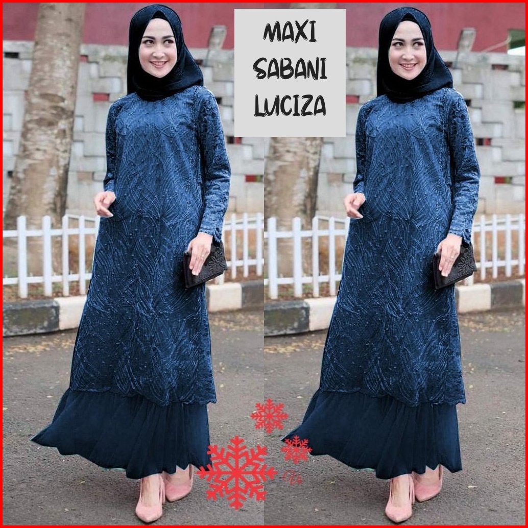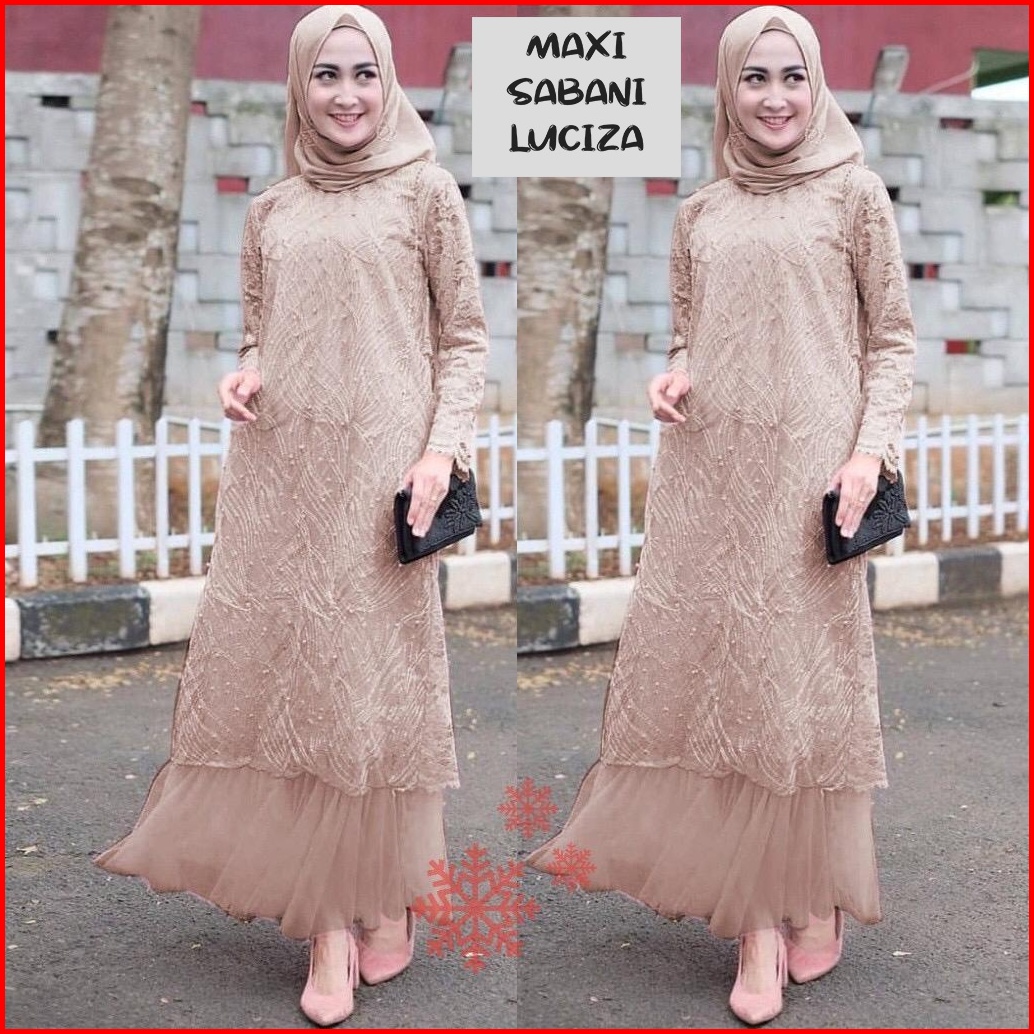 Sabani Gamis Terbaru Brukat Tile Pesta Seragam Kondangan Maxi Dress Muslim Remaja Wanita Ukuran Jumbo - Size M L Xl Xxl