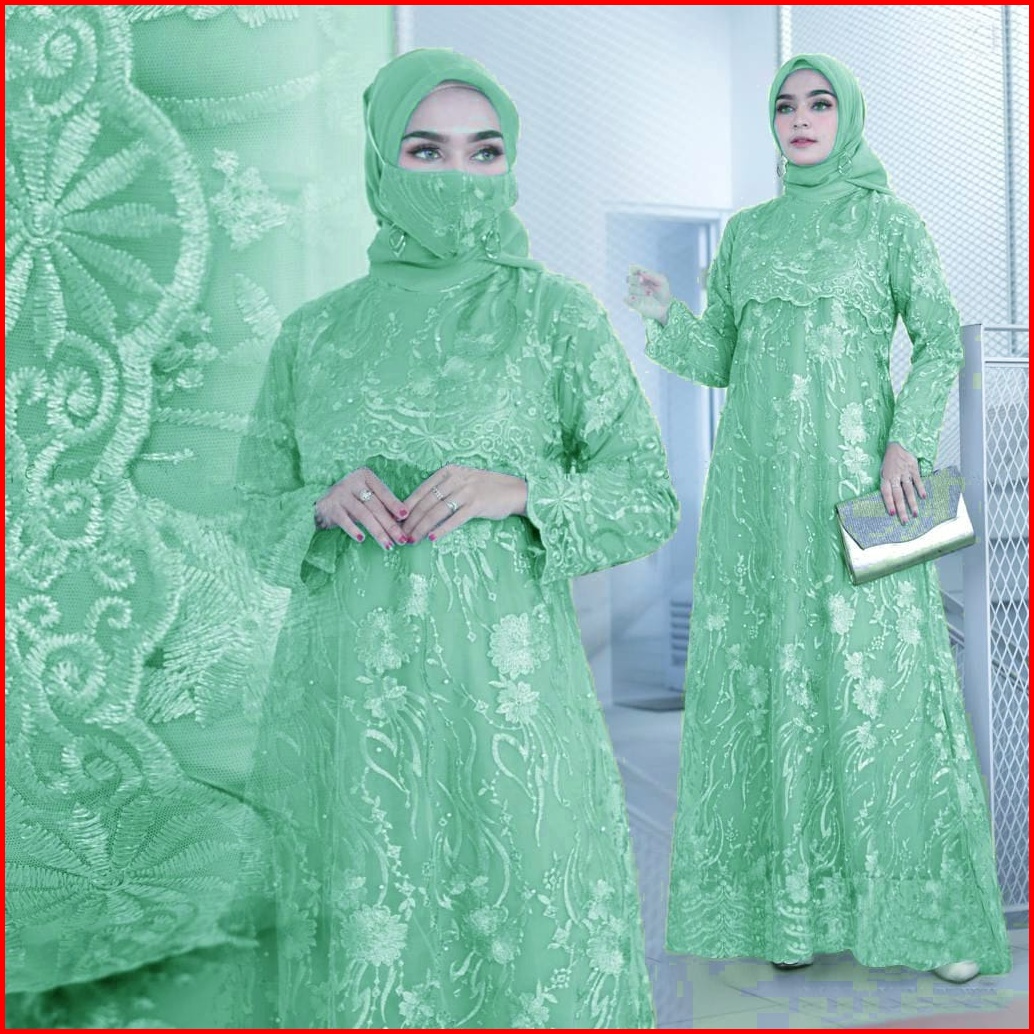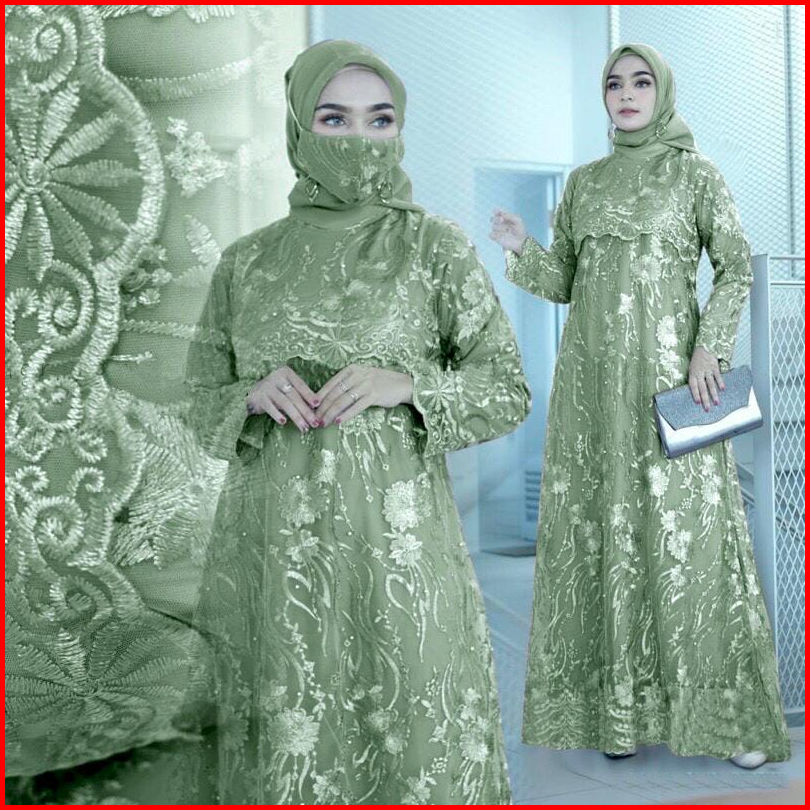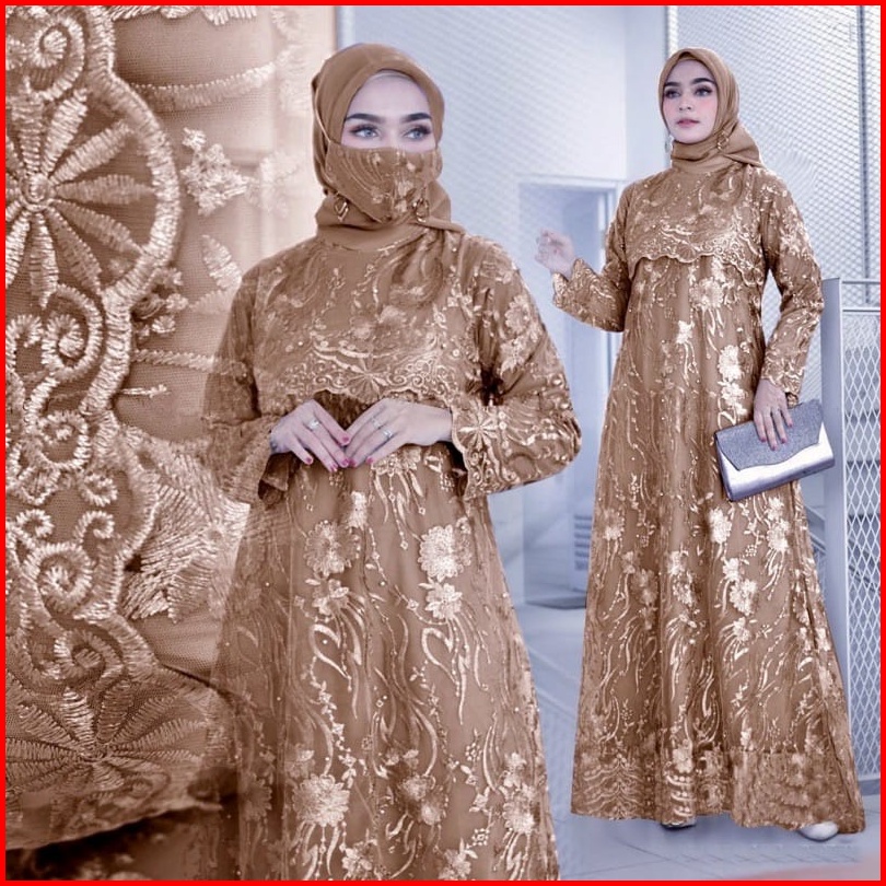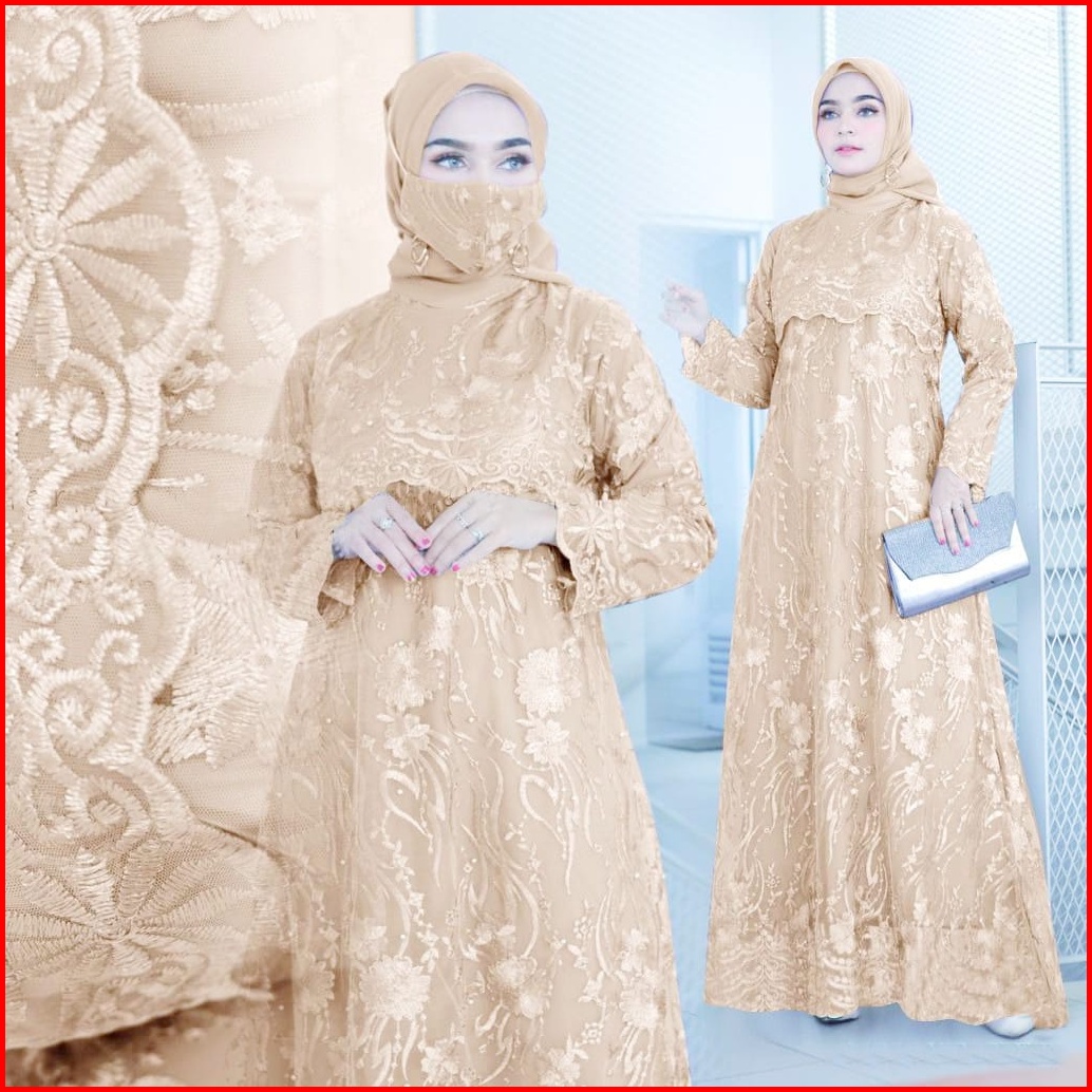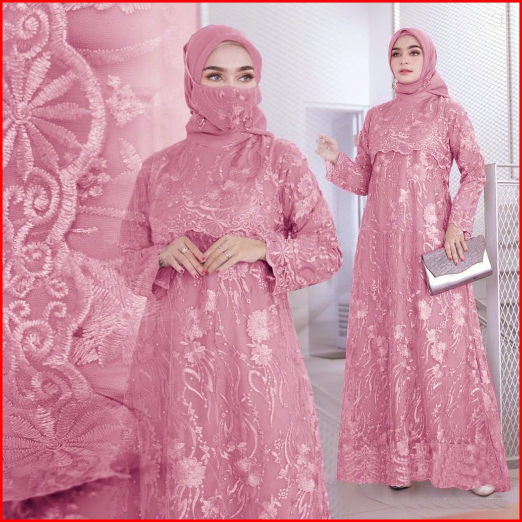 Gamis Soraya Full Brukat Depan Belakang Free Masker Gamis Full Brukat Tile Mutiara Gamis Muslim Kondangan Pesta