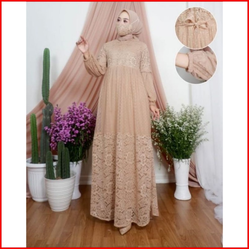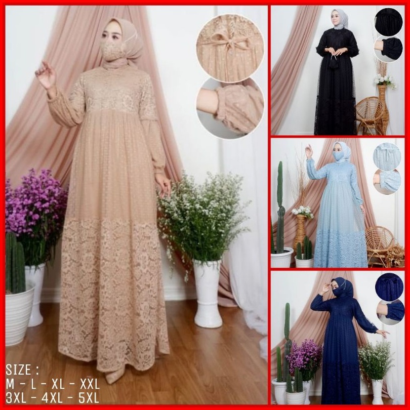 Gamis Brukat Jumbo Tile Terbaru Kinanti Set Size Jumbo Ld 140 Ready Komplit Gamis Brukat Busui Wudhu Friendly