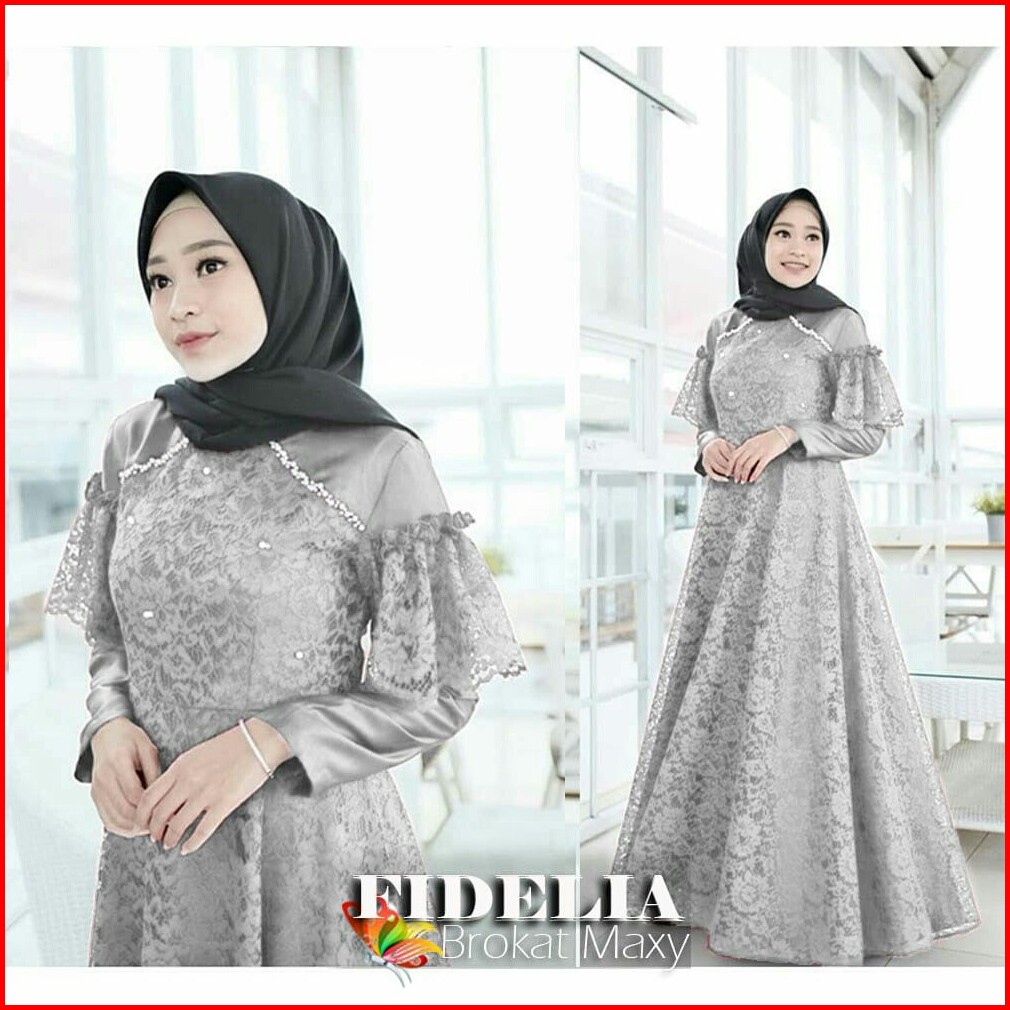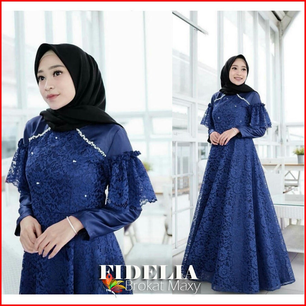 Maxy Dress Fidelia Ld102 Fidelia Maxy Dress Gamis Kondangan Bahan Velvet Dan Brokat Import Aksen Mutiara Cantik