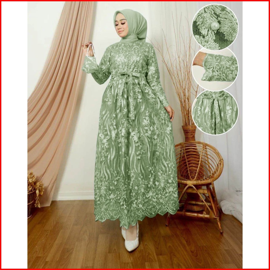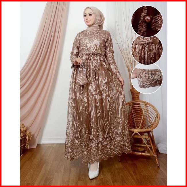 Termurah Maxi Dress Samira Free Masker Tali Obi Gamis Busui Friendly Full Brukat Gamis Kondangan Bridesmaid Tille Mewah