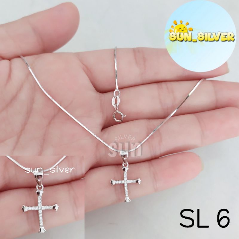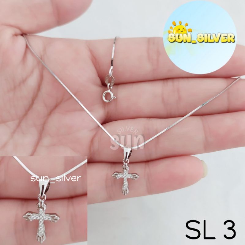 SET KALUNG SALIB PERAK ASLI 925 FASHION, LAPIS EMS PUTIH SL1-SL6