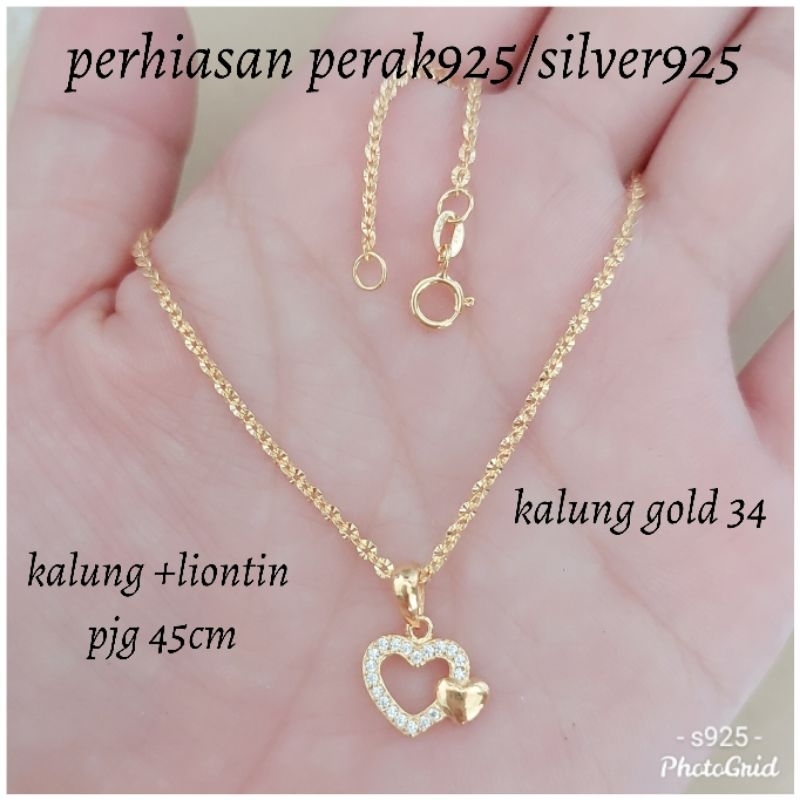 KALUNG NORI UKIR LIONTIN LOVE PERAK 925 LAPIS MAS PUTIH KG 34