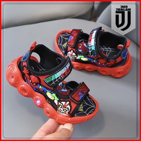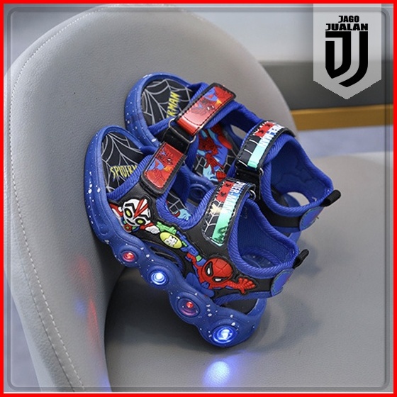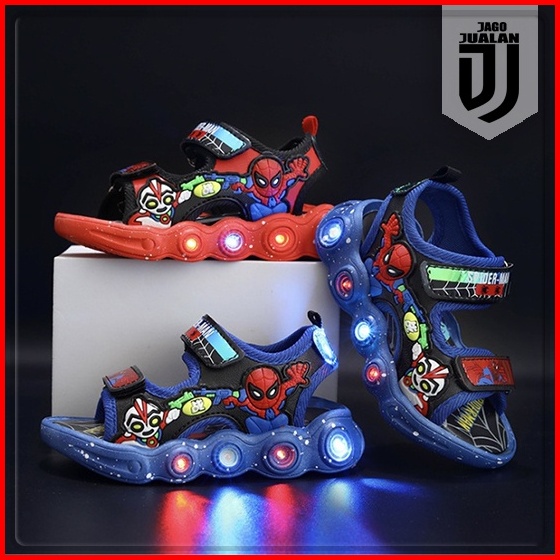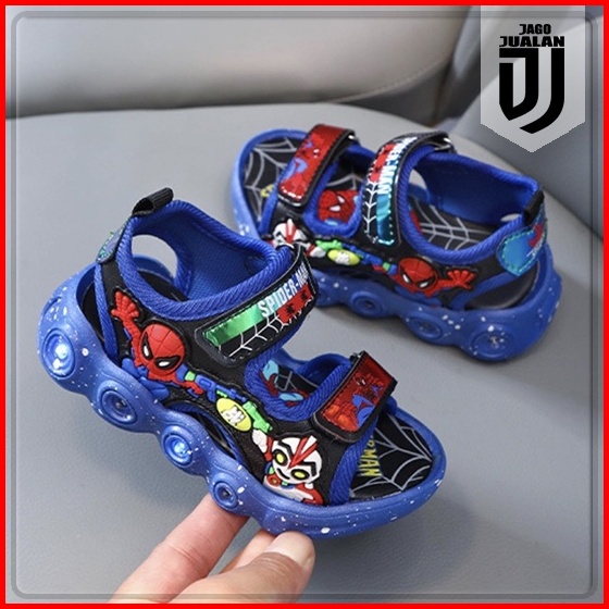 Sandal Gunung Lampu Led Spiderman Anak Usia 1 2 3 4 5 6 Tahun Sandal Sepatu Anak Balita Cowok Motif Spiderman Lucu Sanda