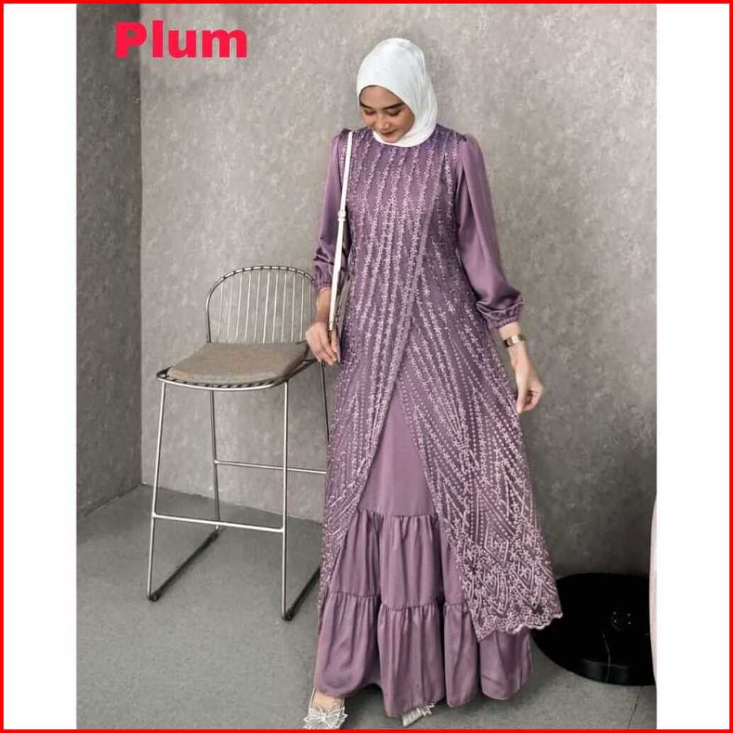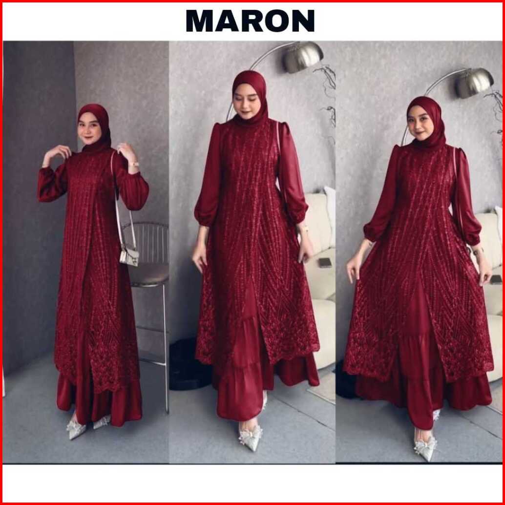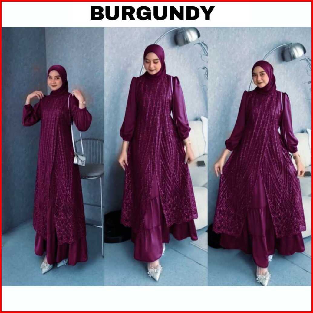 Gamis Fuji Pesta Mewah Elegan Baju Kondangan Warna Burgundy Gamis Brukat Terbaru 2025 Wanita Kekinian Couple Ibu Anak Ki