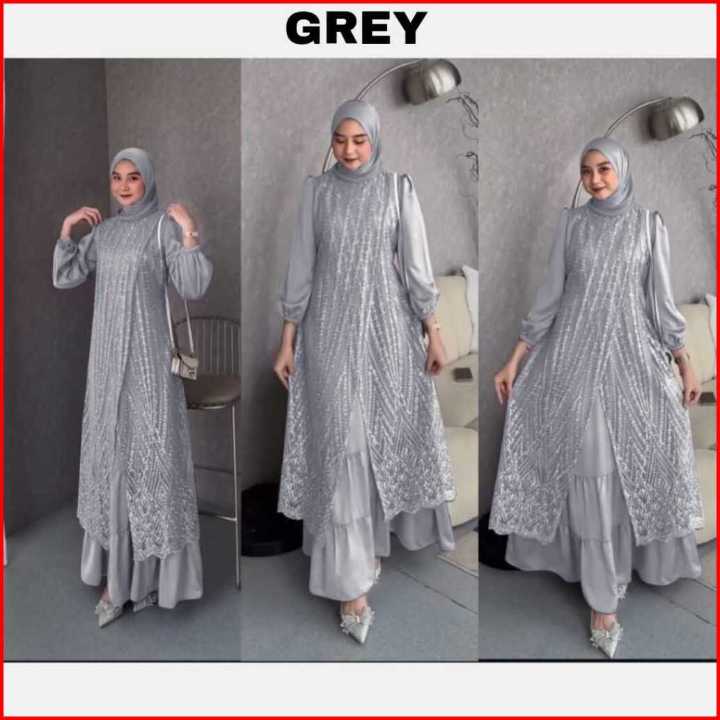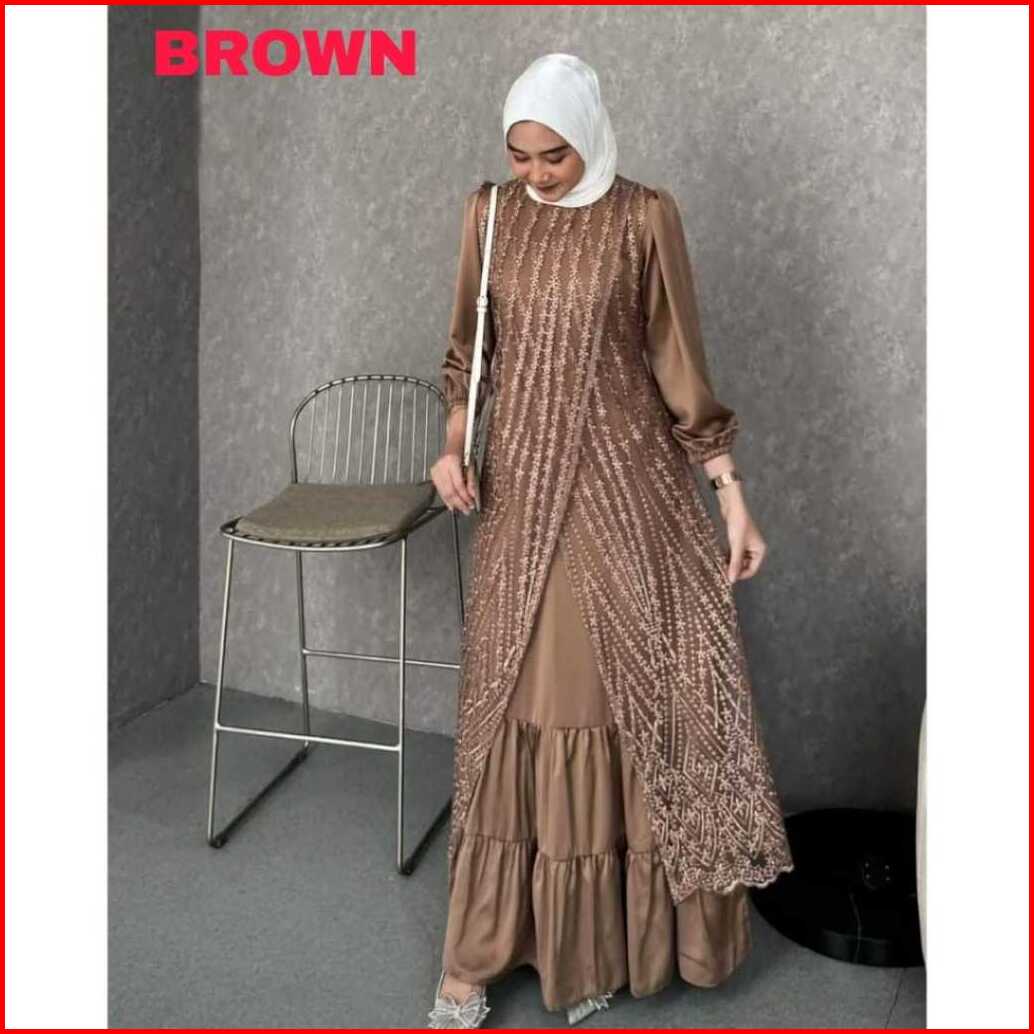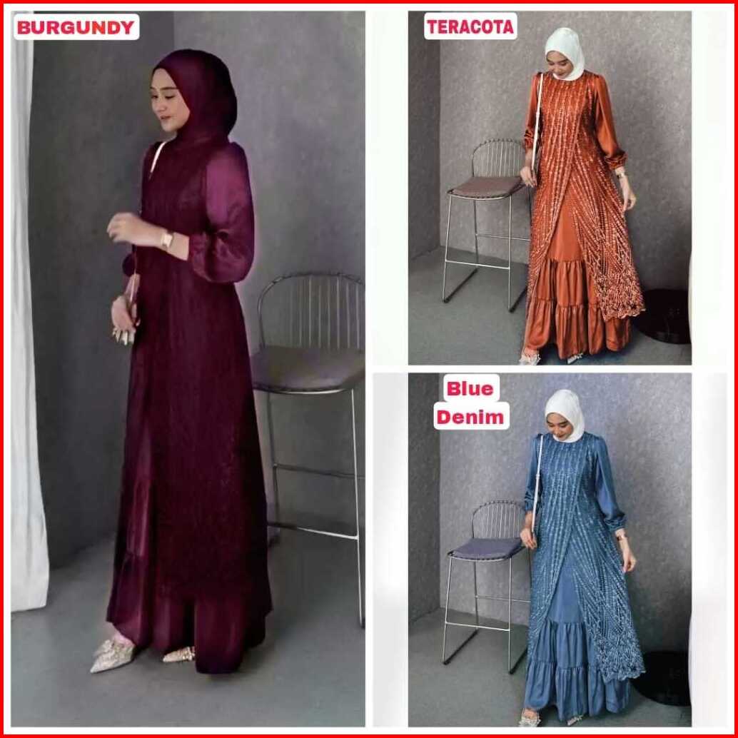 Gamis Fuji Pesta Mewah Elegan Baju Kondangan Warna Burgundy Gamis Brukat Terbaru 2025 Wanita Kekinian Couple Ibu Anak Ki