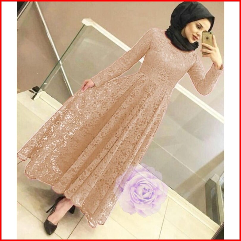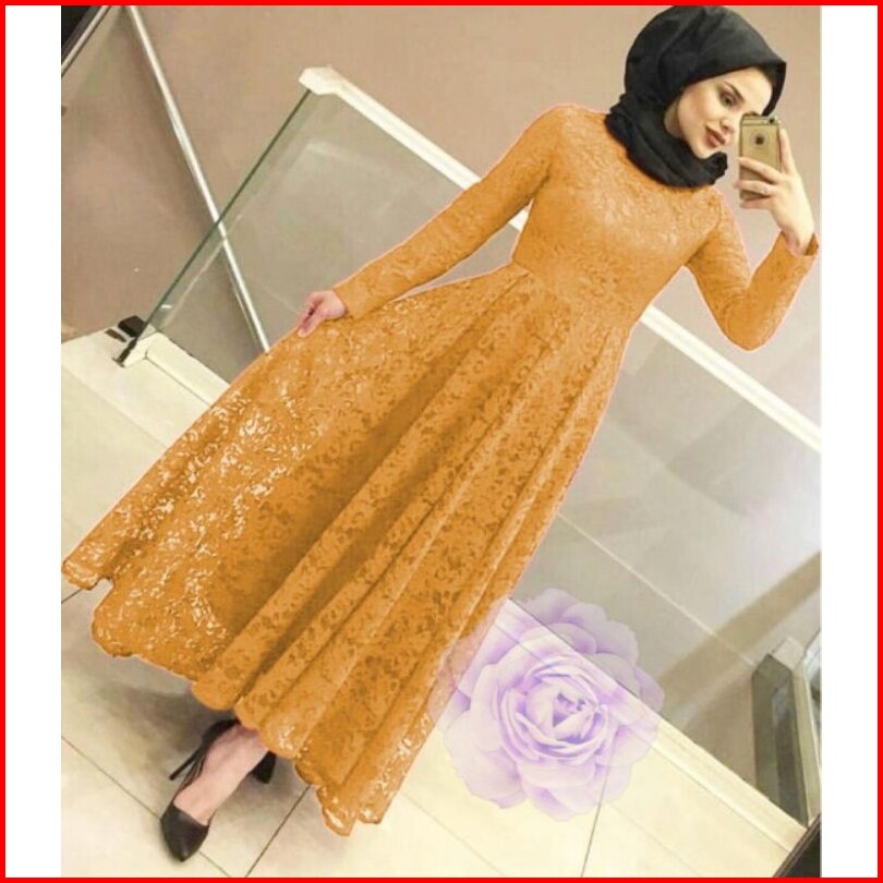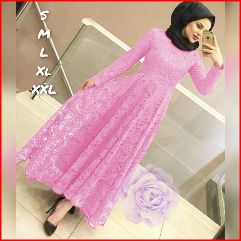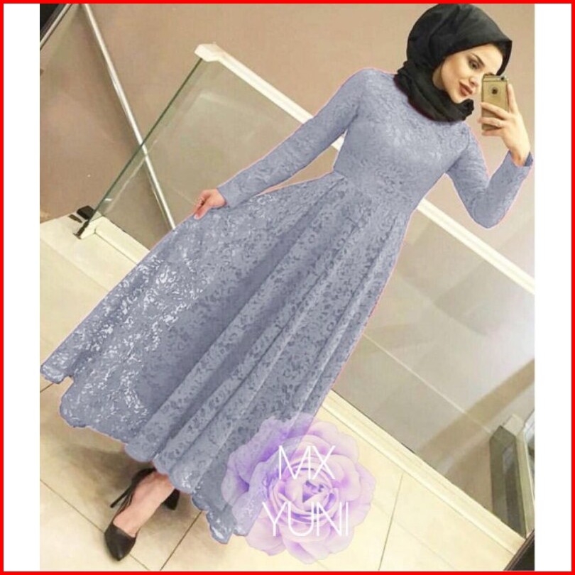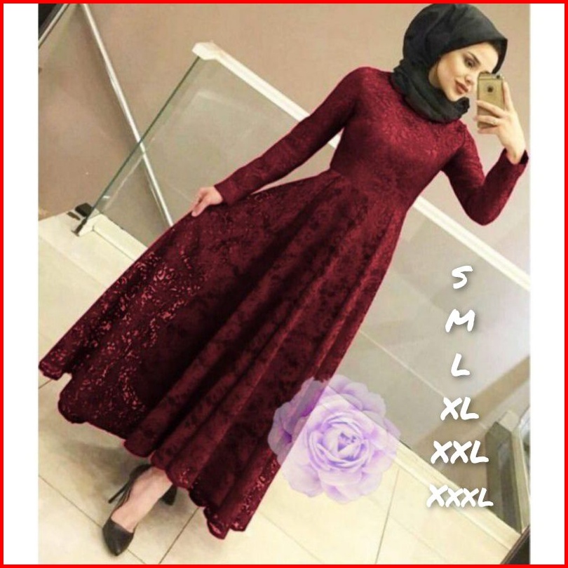 Maxi Yuni Uk S - Xxxl Super Jumbo Gamis Dress Full Brukat Gamis Pesta