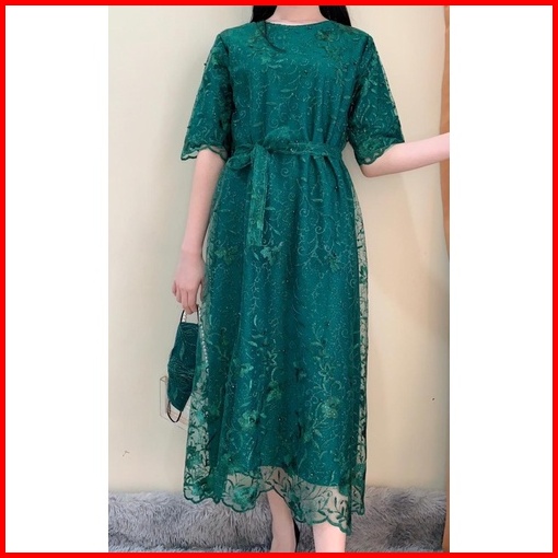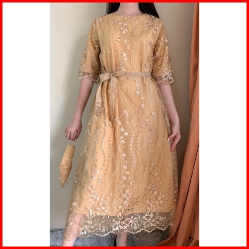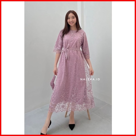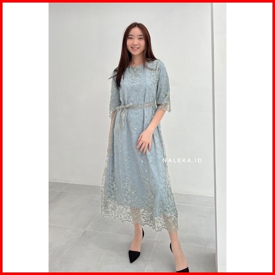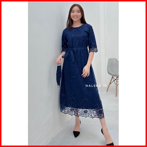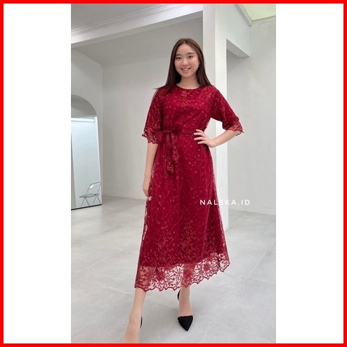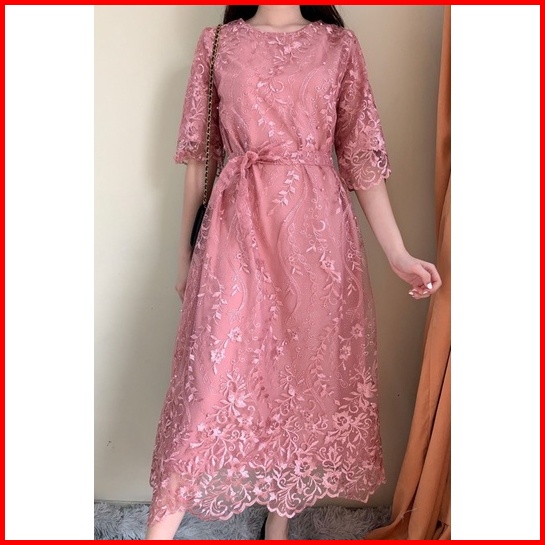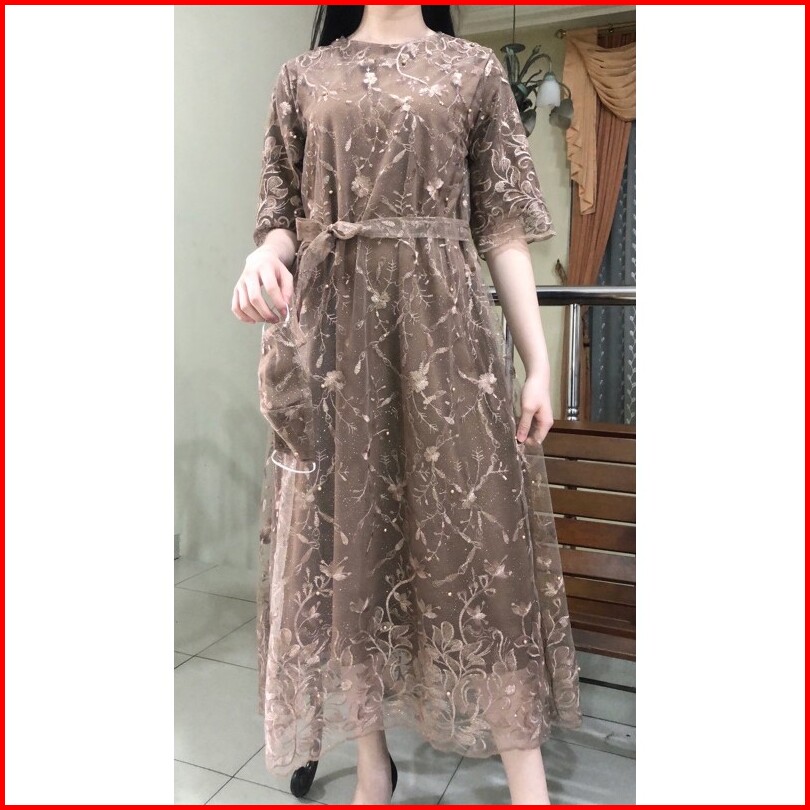 N41 Dress Pesta Panjang Untuk Kondangan Full Brukat Lebaran Baju Muslim Wanita Panjang Mewah