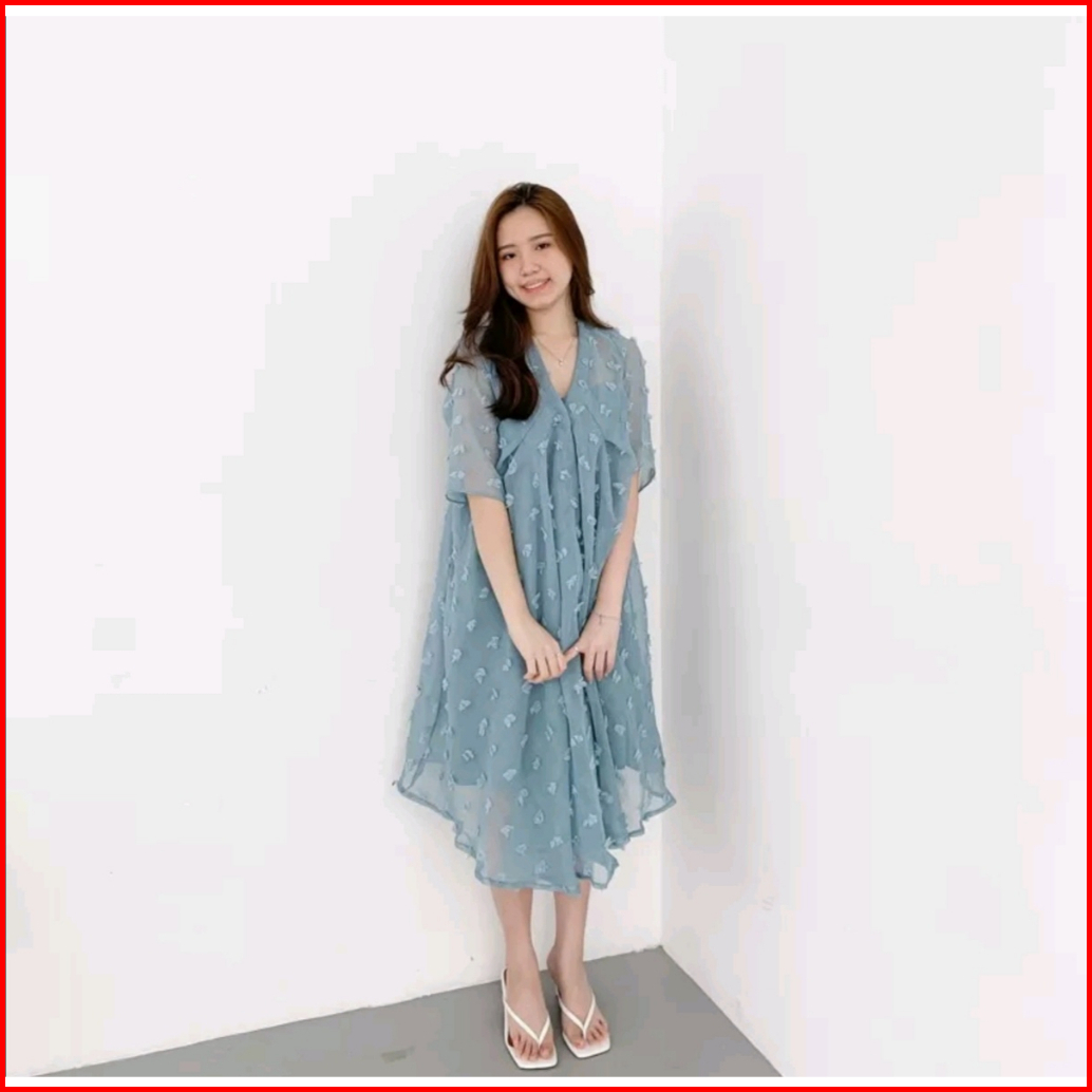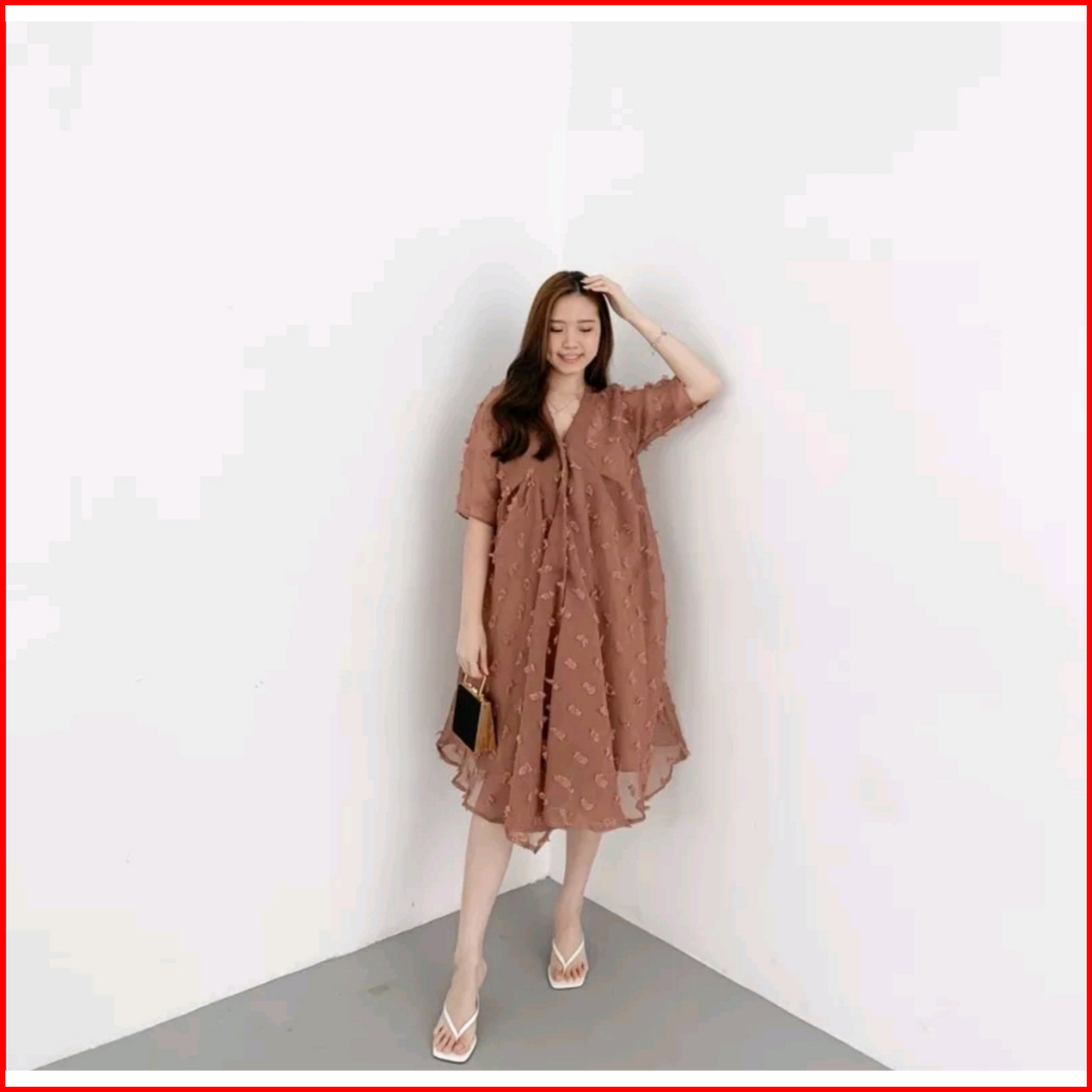 Mora Dress Free Inner Dress Brukat Baju Lebaran Idul Fitri Dress Kondangan Korean Dress Lengan Panjang Timbul Brokat Dre