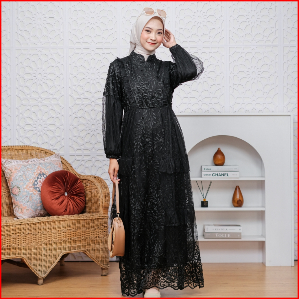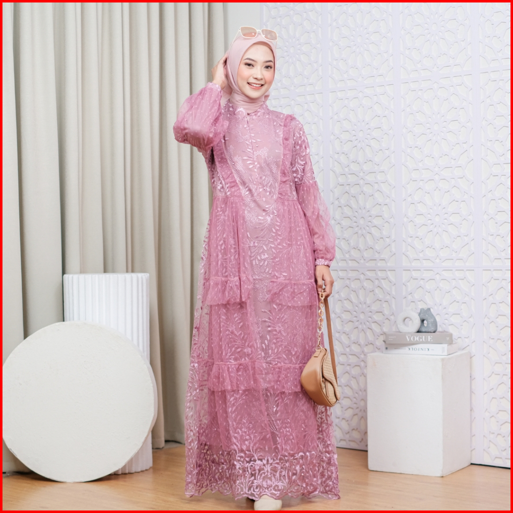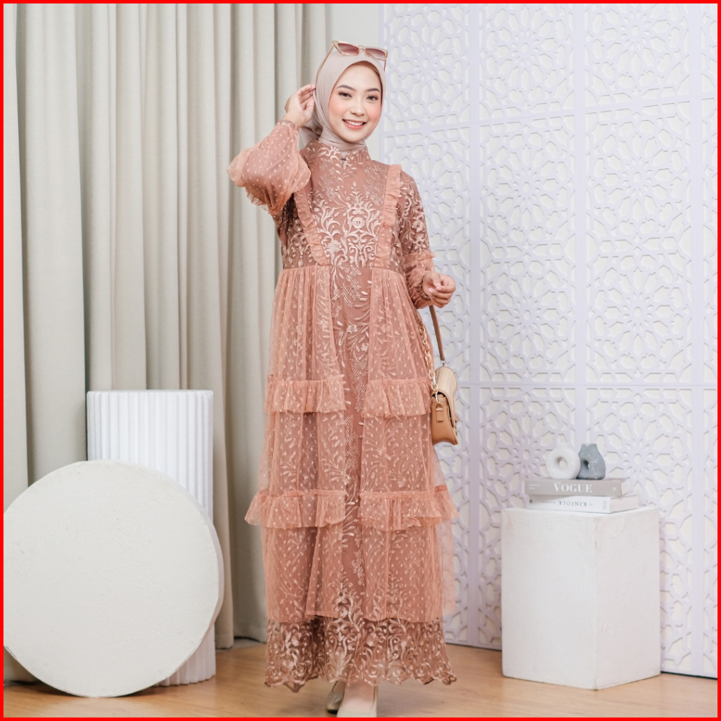 Raisha - Gamis Brukat Ayesha Dress Kondangan Busui Friendly Full Tile Brokat Bordir Keliling Mix Tile Dot Untuk Gamis Ko