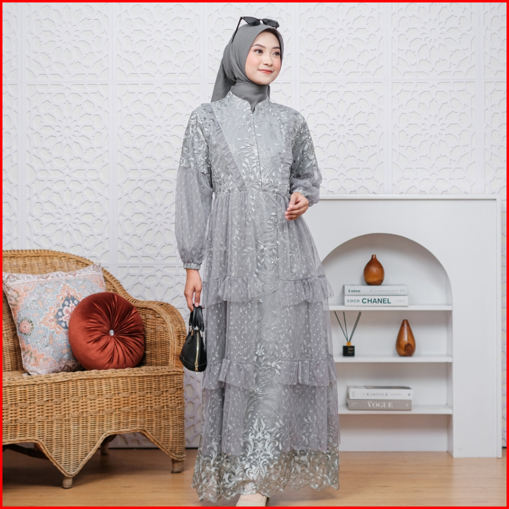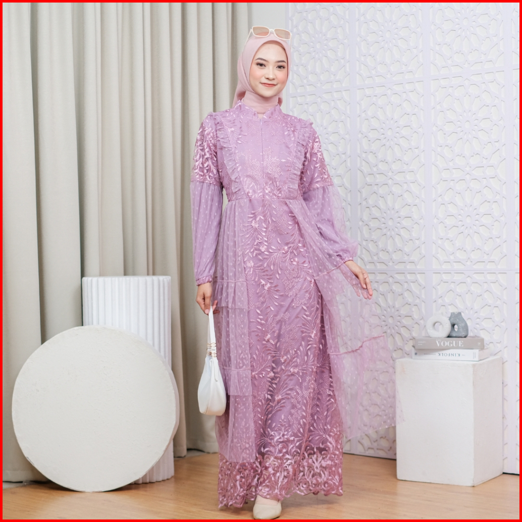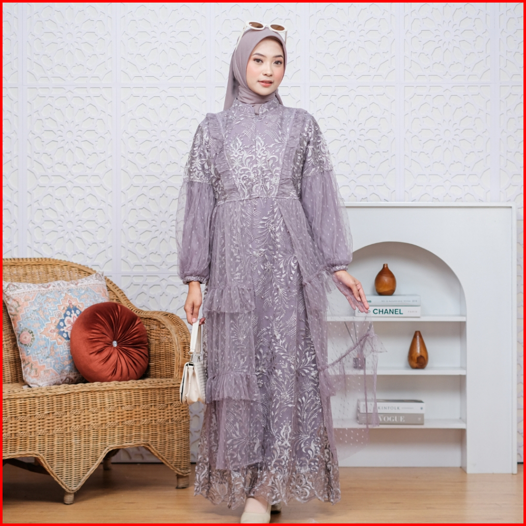 Raisha - Gamis Brukat Ayesha Dress Kondangan Busui Friendly Full Tile Brokat Bordir Keliling Mix Tile Dot Untuk Gamis Ko