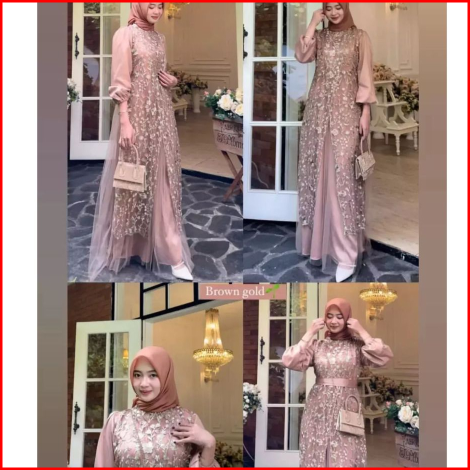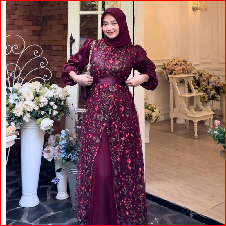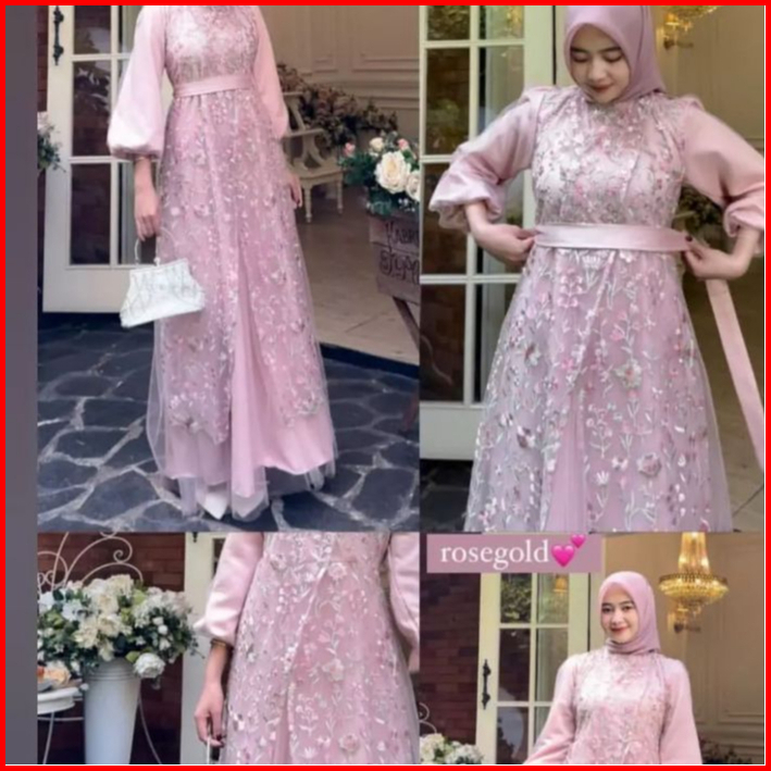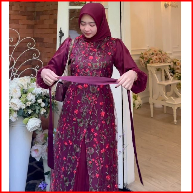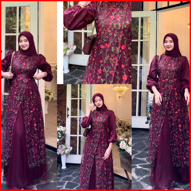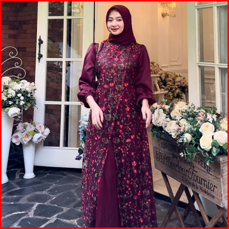 Baju Wanita Muslim Fuji Dress Brukat Tille Garden Silk Premium Terbaru 2024 Gamis Pesta Mewah Elegan