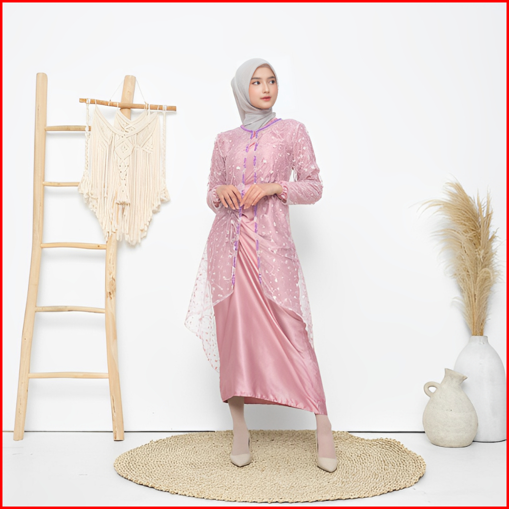 Gamis Terbaru Aghnia Maxi Dress Brukat Gamis 3 Look Free Belt Kombinasi Tille Tutu Karet Pinggang Gamis Agnia Satin Velv