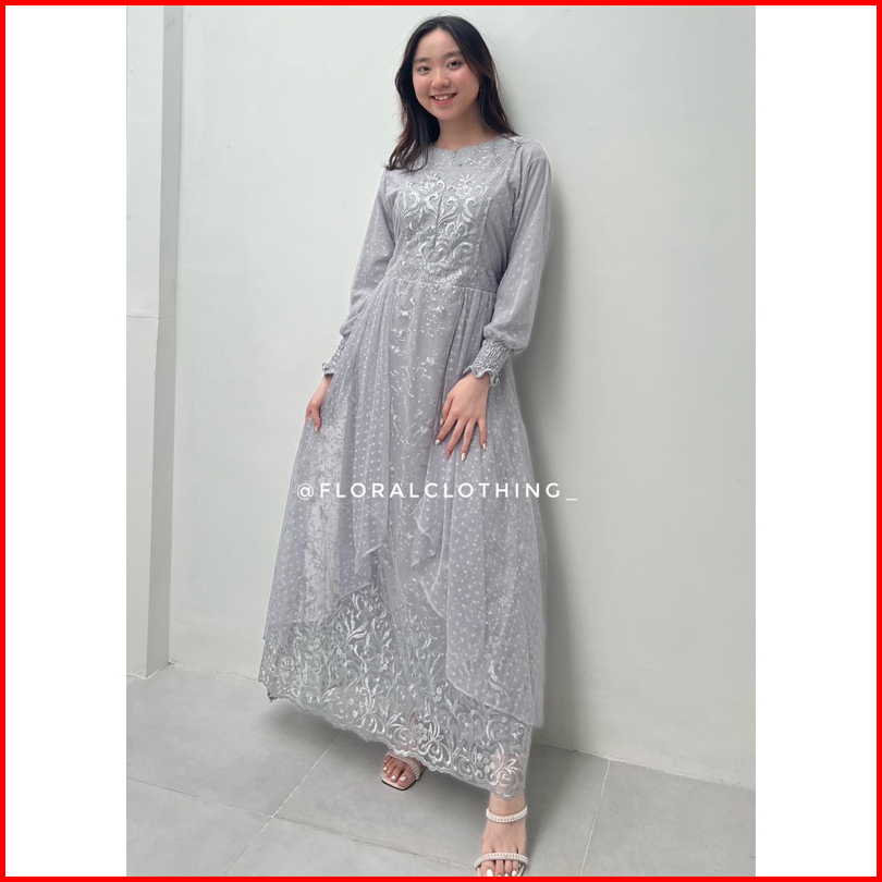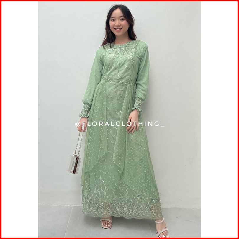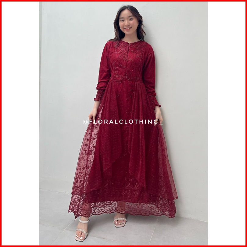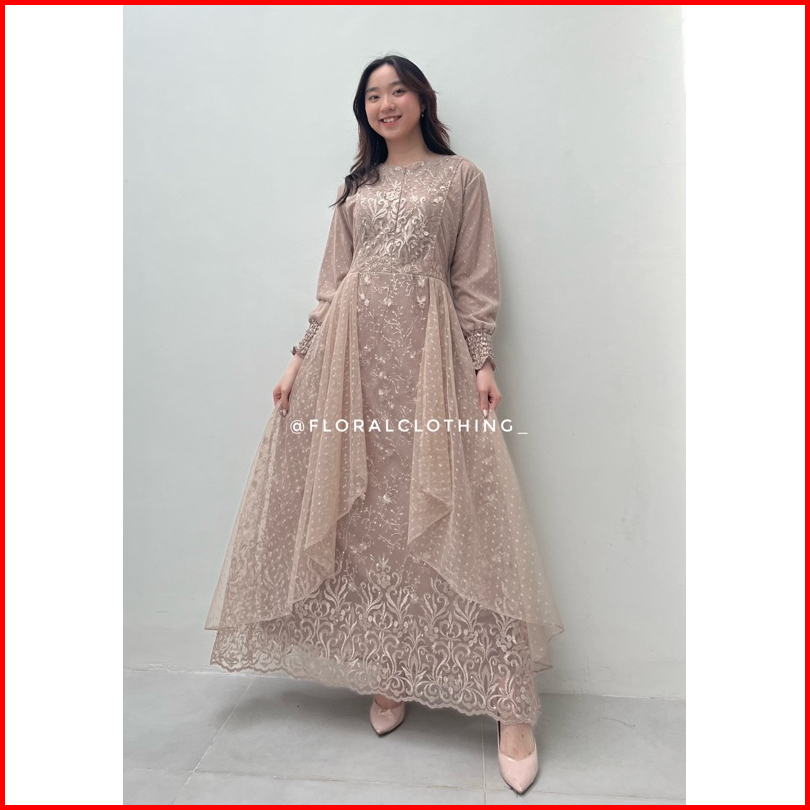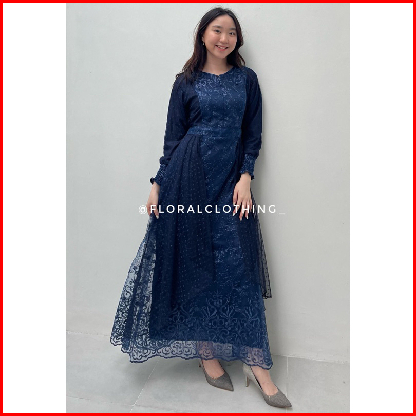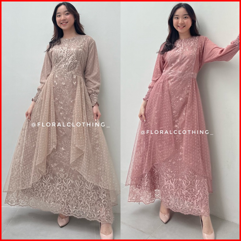 F504 Dress Kondangan Muslim Mewah Busui Friendly Bahan Brokat Premium Korean Look
