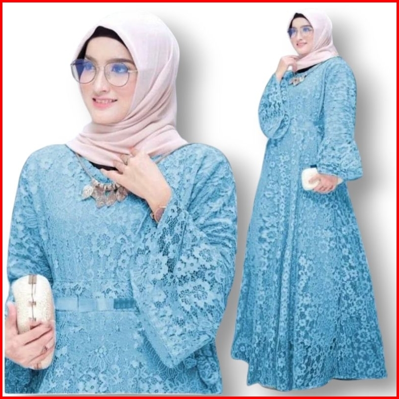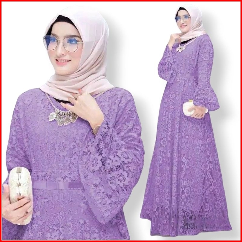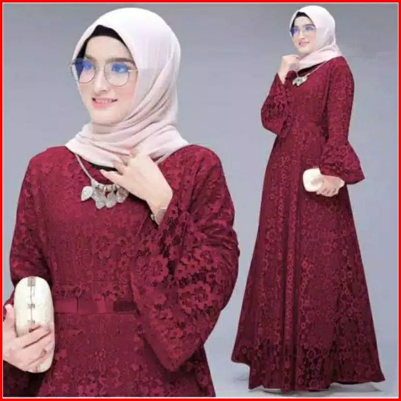 Gamis Busui Kekinian Dress Busui Kondangan Baju Gamis Full Brukat Dress Lengan Panjang