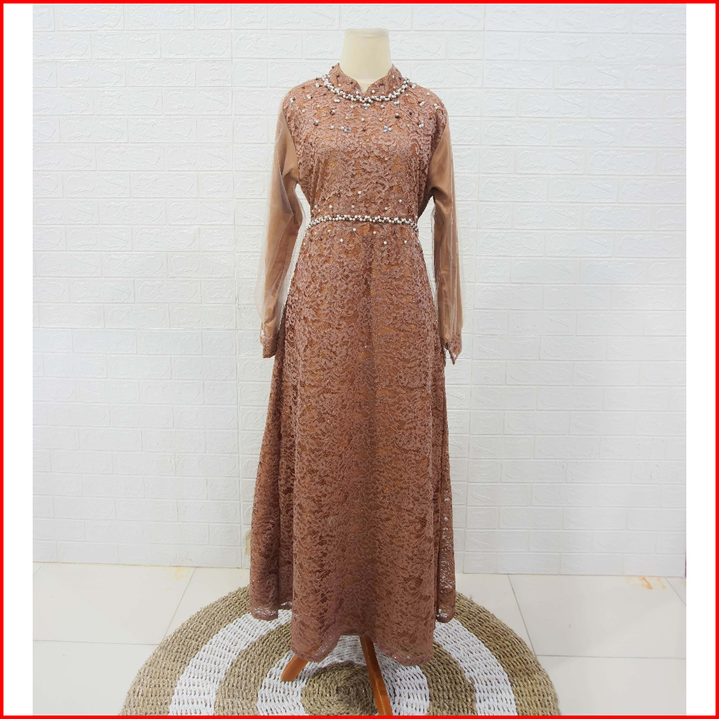 New Product Ada Jumbo Xxl Nadine Dress Brokat Brukat Kombinasi Tille Mutiara Mewah Gamis Maxy Baju Muslim Dress Brukat K