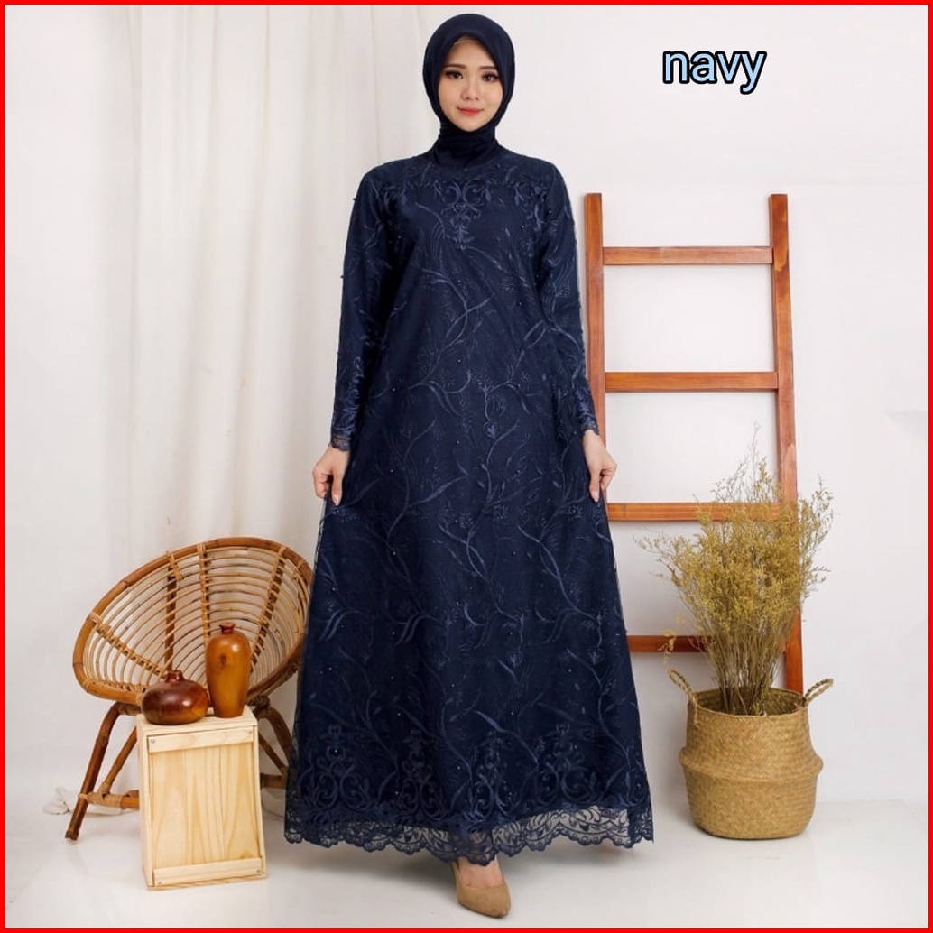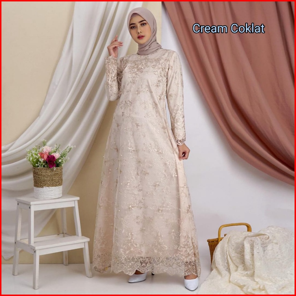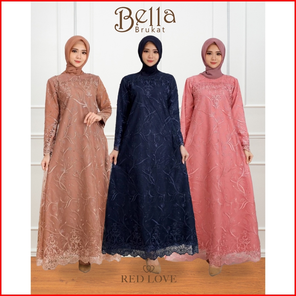 Redlove - Gamis Baju Muslim Dress Bella Full Brukat Tile Full Mutiara