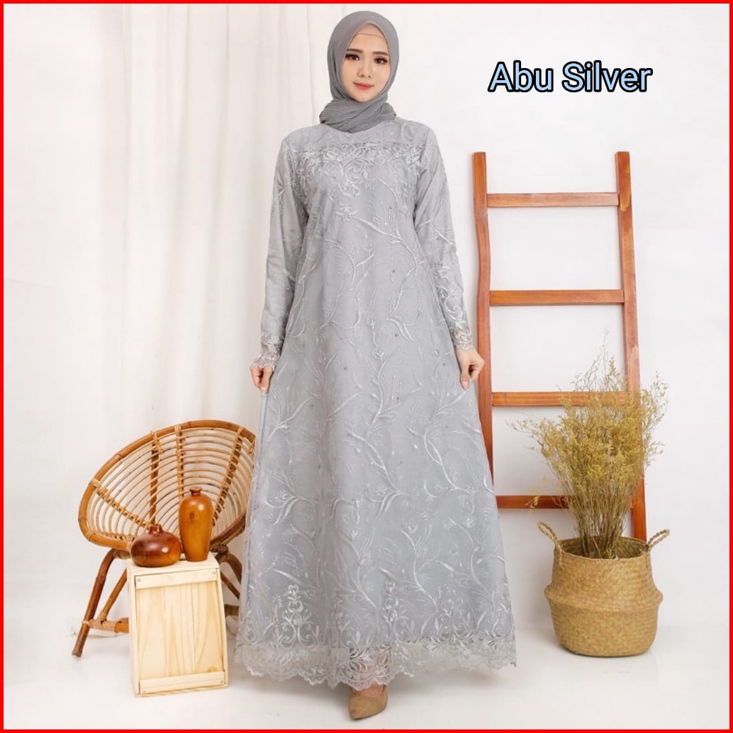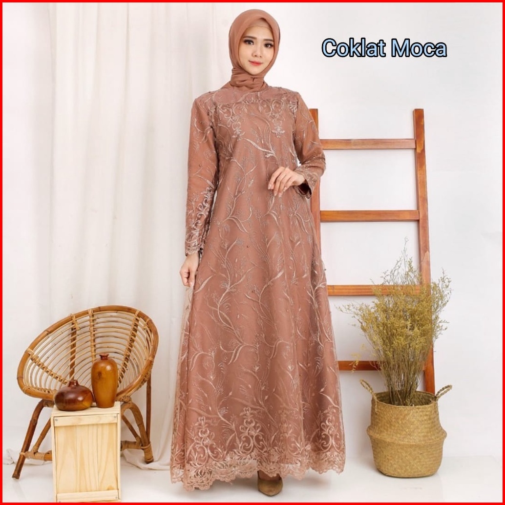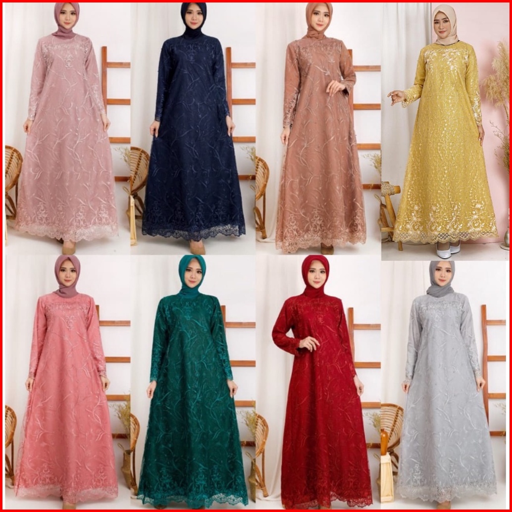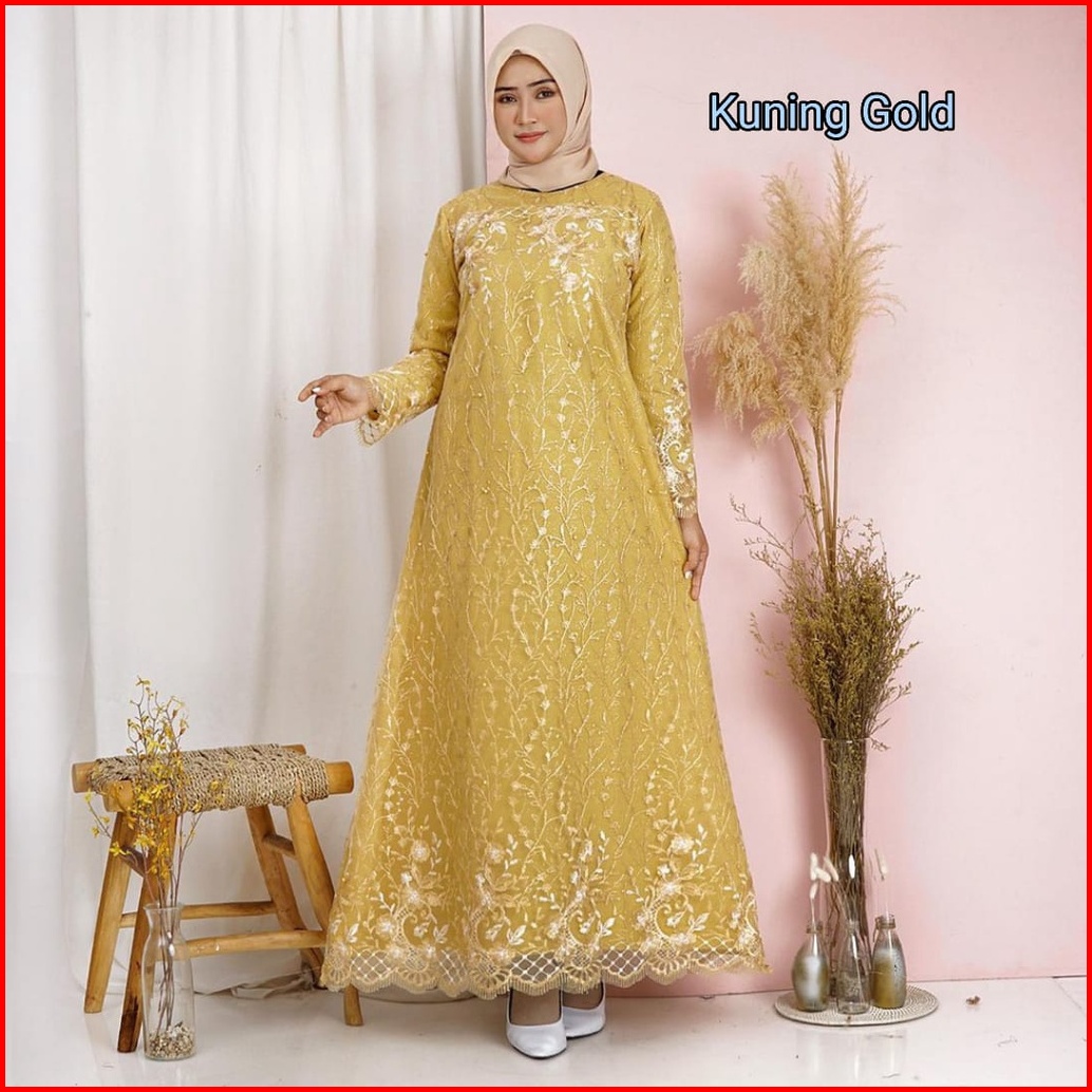 Redlove - Gamis Baju Muslim Dress Bella Full Brukat Tile Full Mutiara