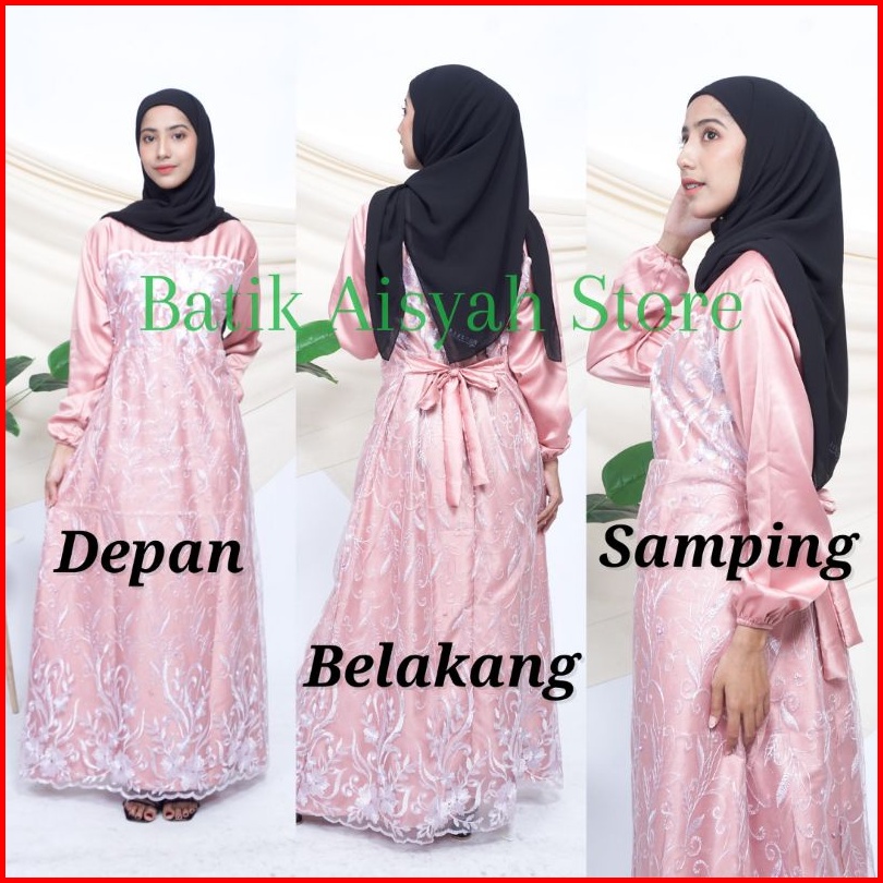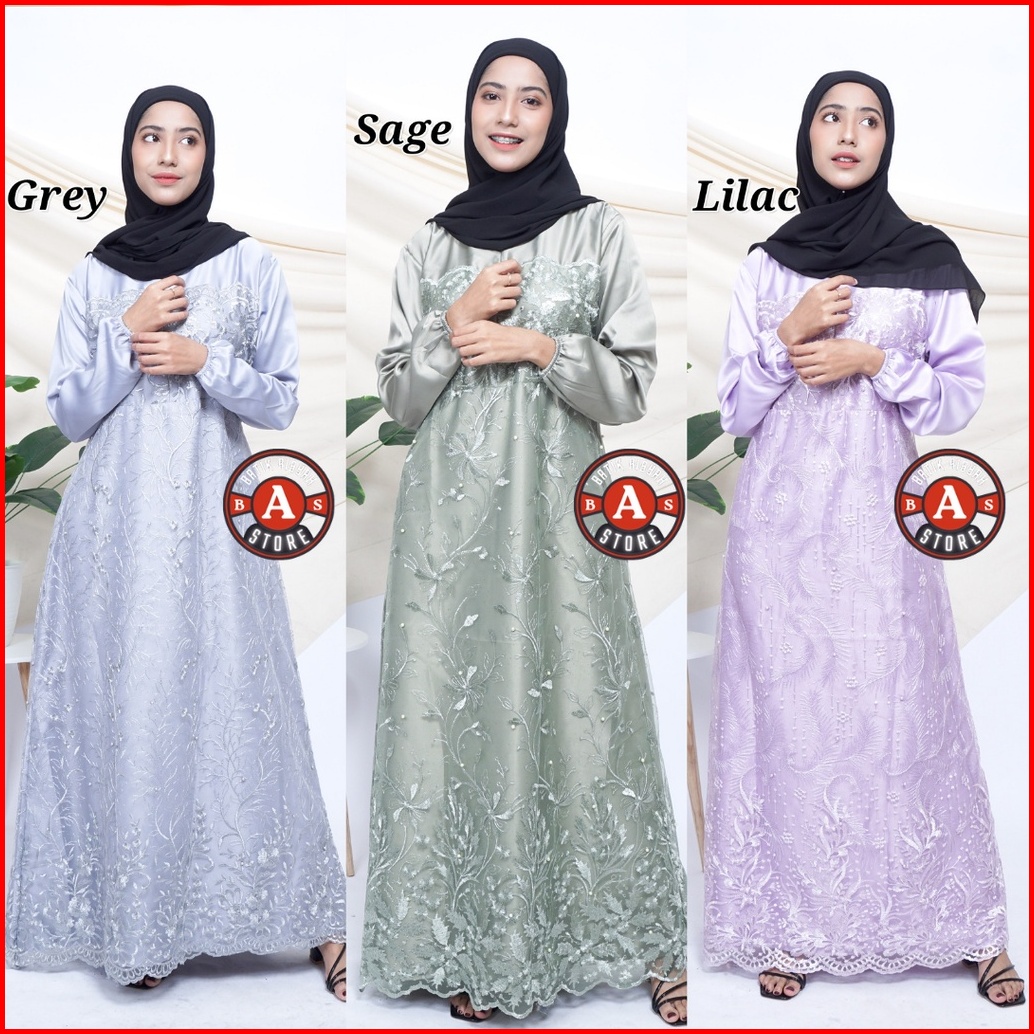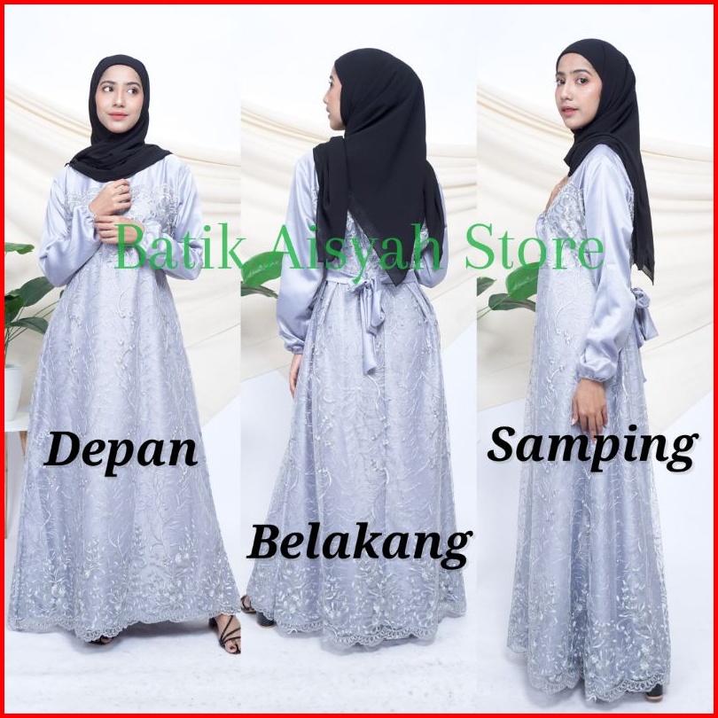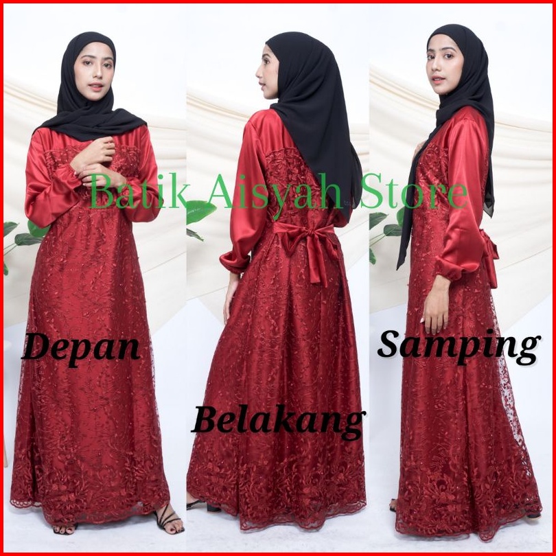 Gamis Brukat Dress Tile Party Dress Busui Tulle Full Brokat Mutiara Gaun Pesta Wanita Kondangan Baju Seragam Bridesmaid
