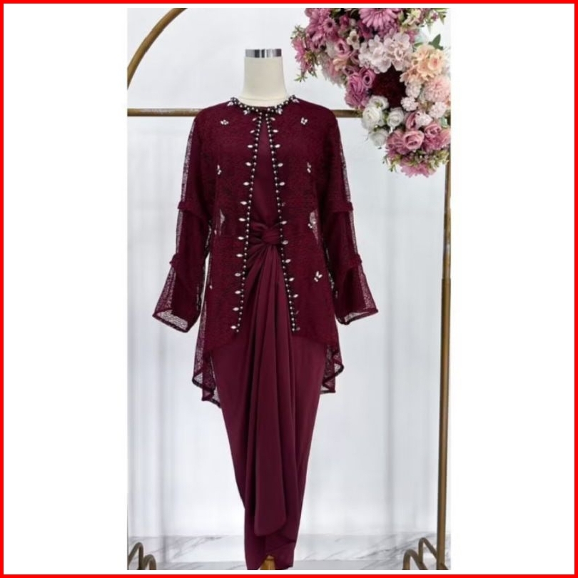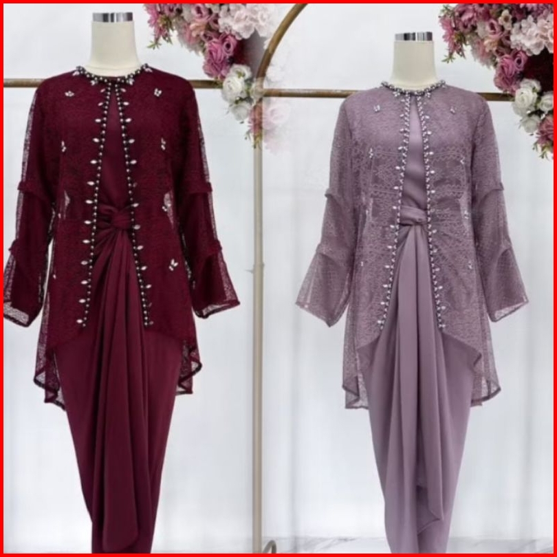 Oneset Clarissa Outer Brokat Premium Outfit Kondangan Gaun Wisuda Gaun Engagement Bridesmaid Kebaya Medan Outer Medan Ba