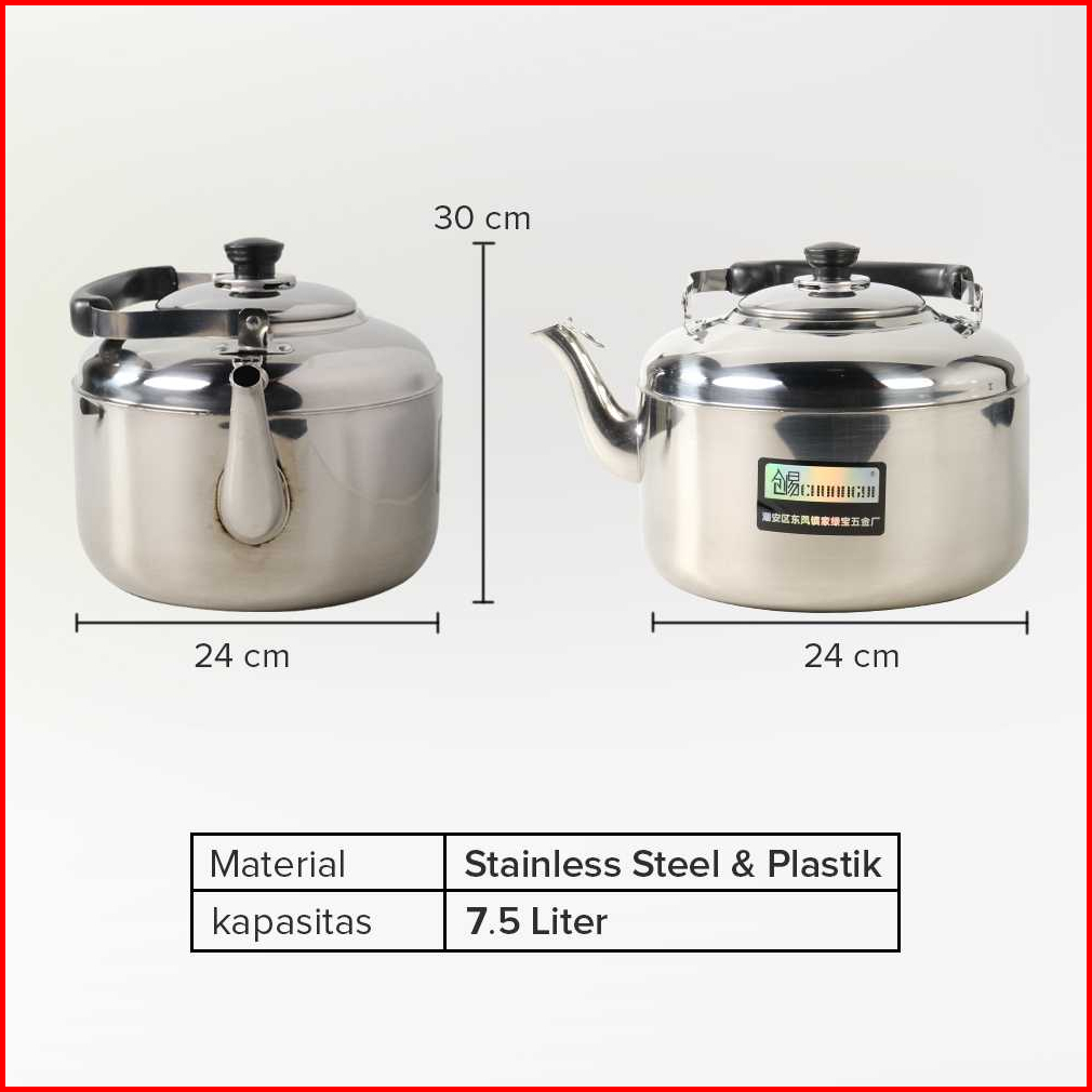 Teko Ketel Masak Air Panas Panci Stainless Steel 7.5 Liter
