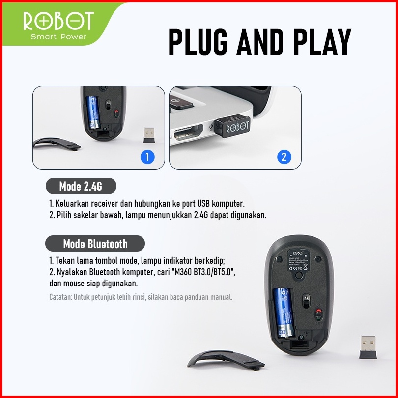 Mouse Bluetooth 5.0 Robot M360 Wireless Usb 2.4g Dual Mode Connection Wireless Silent Click 18000 Dpi