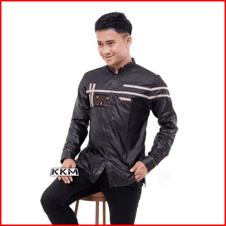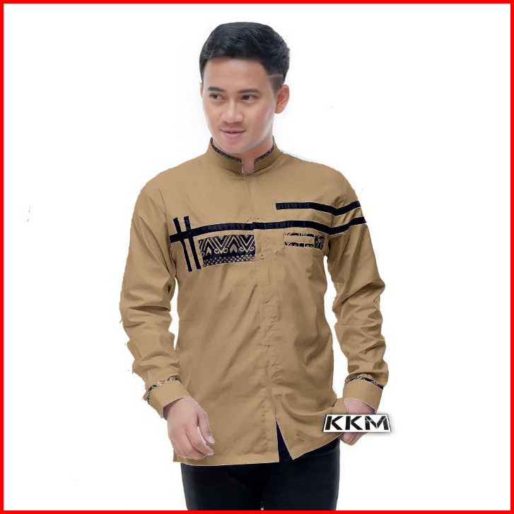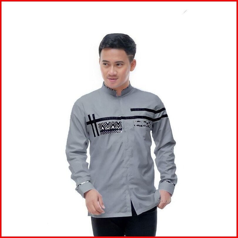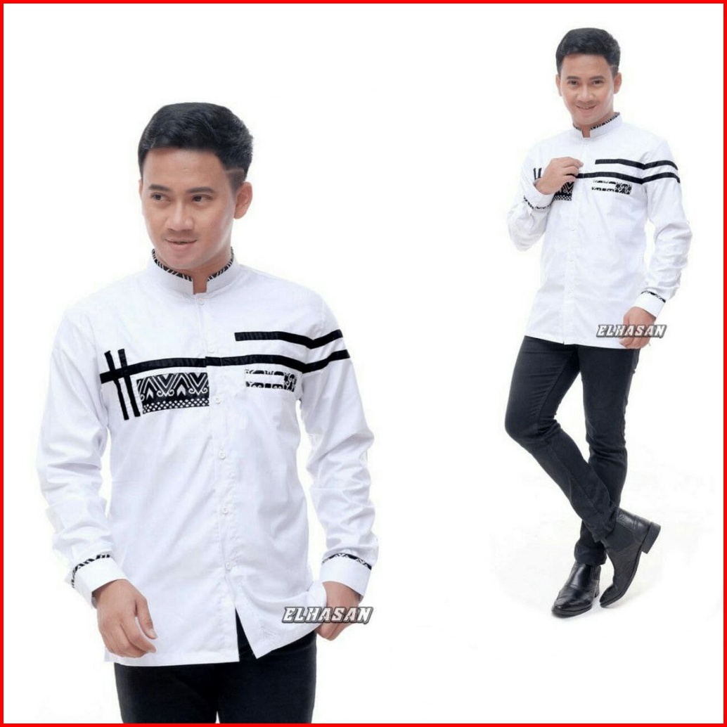 Baju Koko Muslim Lengan Panjang Kombinasi Batik Bahan Katun Pakaian Pria Dewasa Baju Kemeja Putih