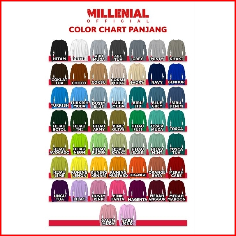 Hitam, NAVY, KUNING MUSTARD, MARON, Putih, HIJAU BOTOL, COKLAT TUA, Abu Tua, COKSU, BLUE GREY, IVORY CREAM, HIJAU ARMY, BIRU BENHUR, Biru Muda