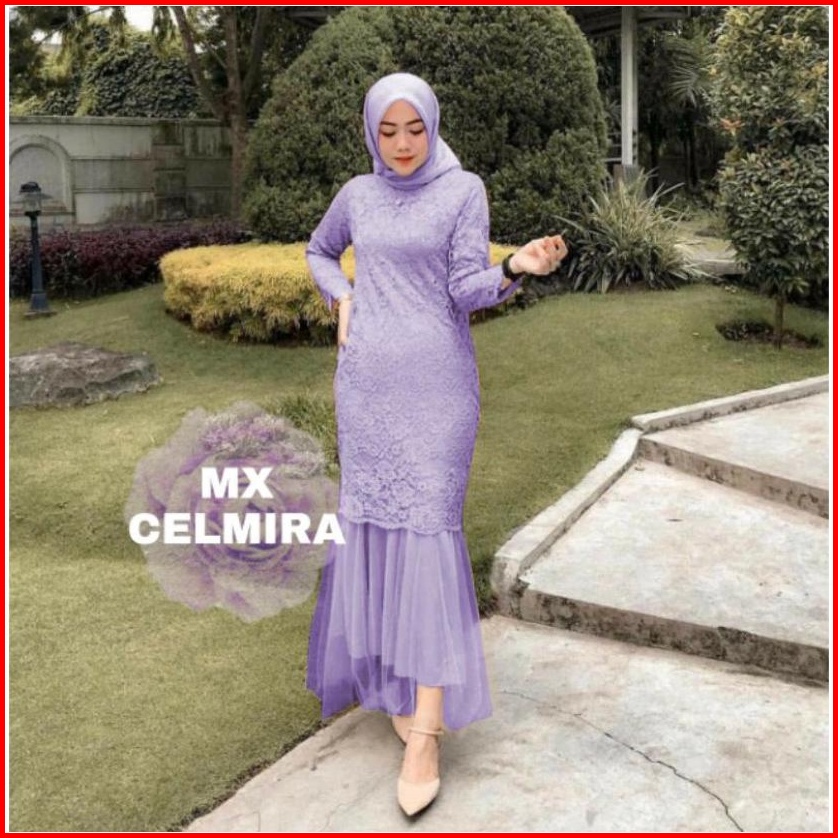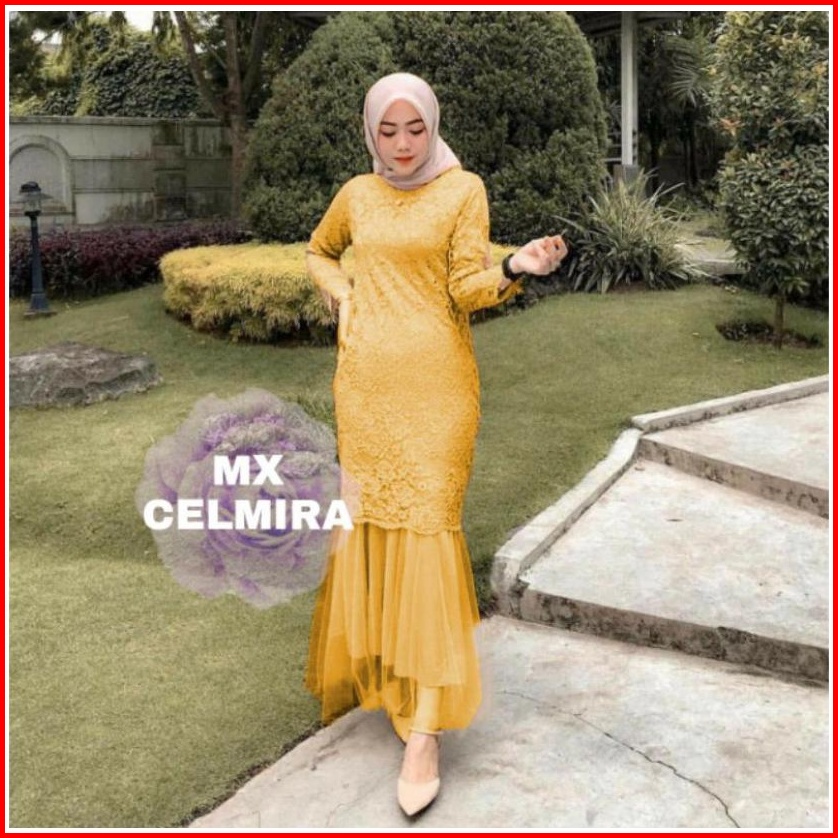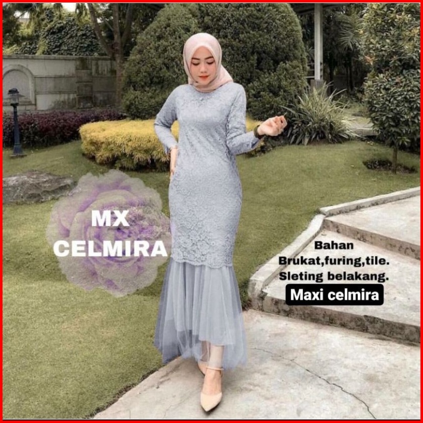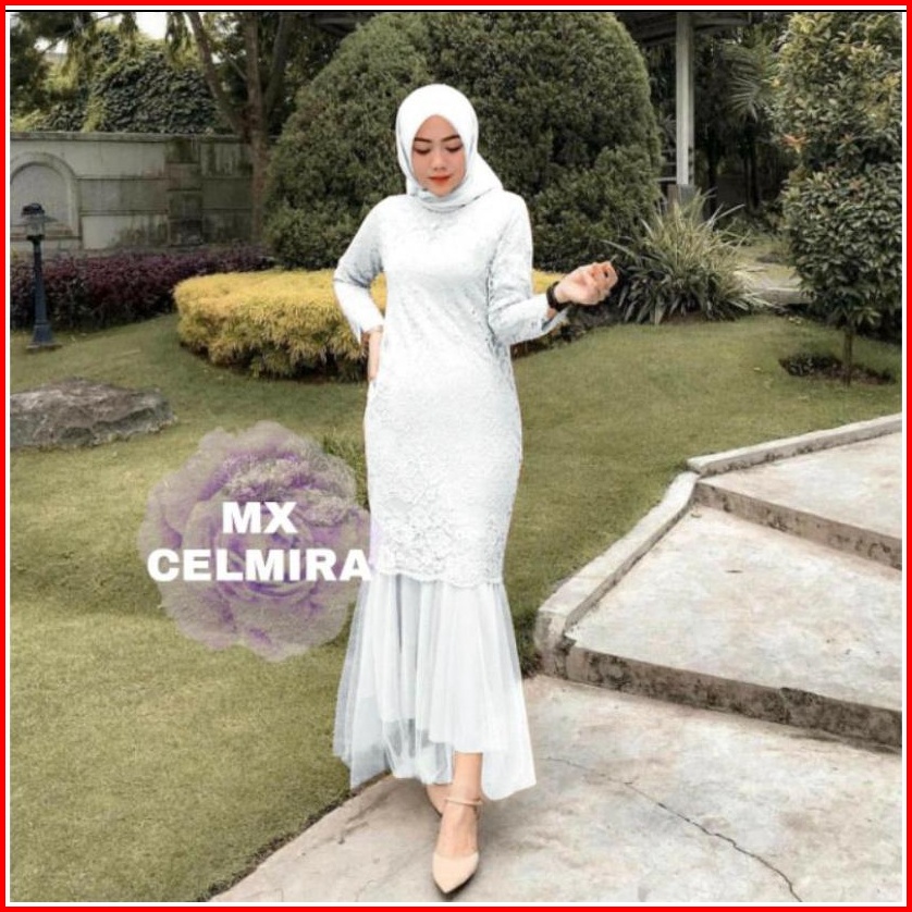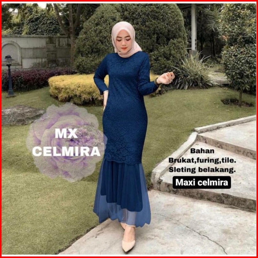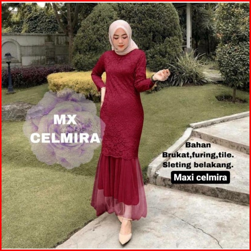 Redlove - Gamis Baju Muslim Dress Celmira Duyung Brukat Tulang Premium 2