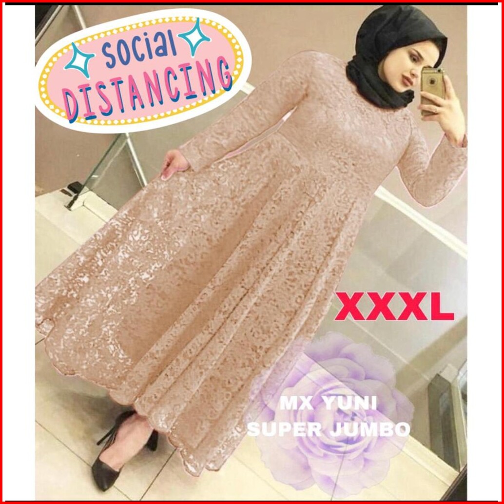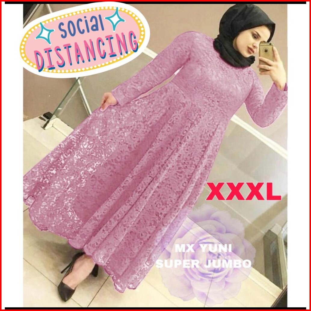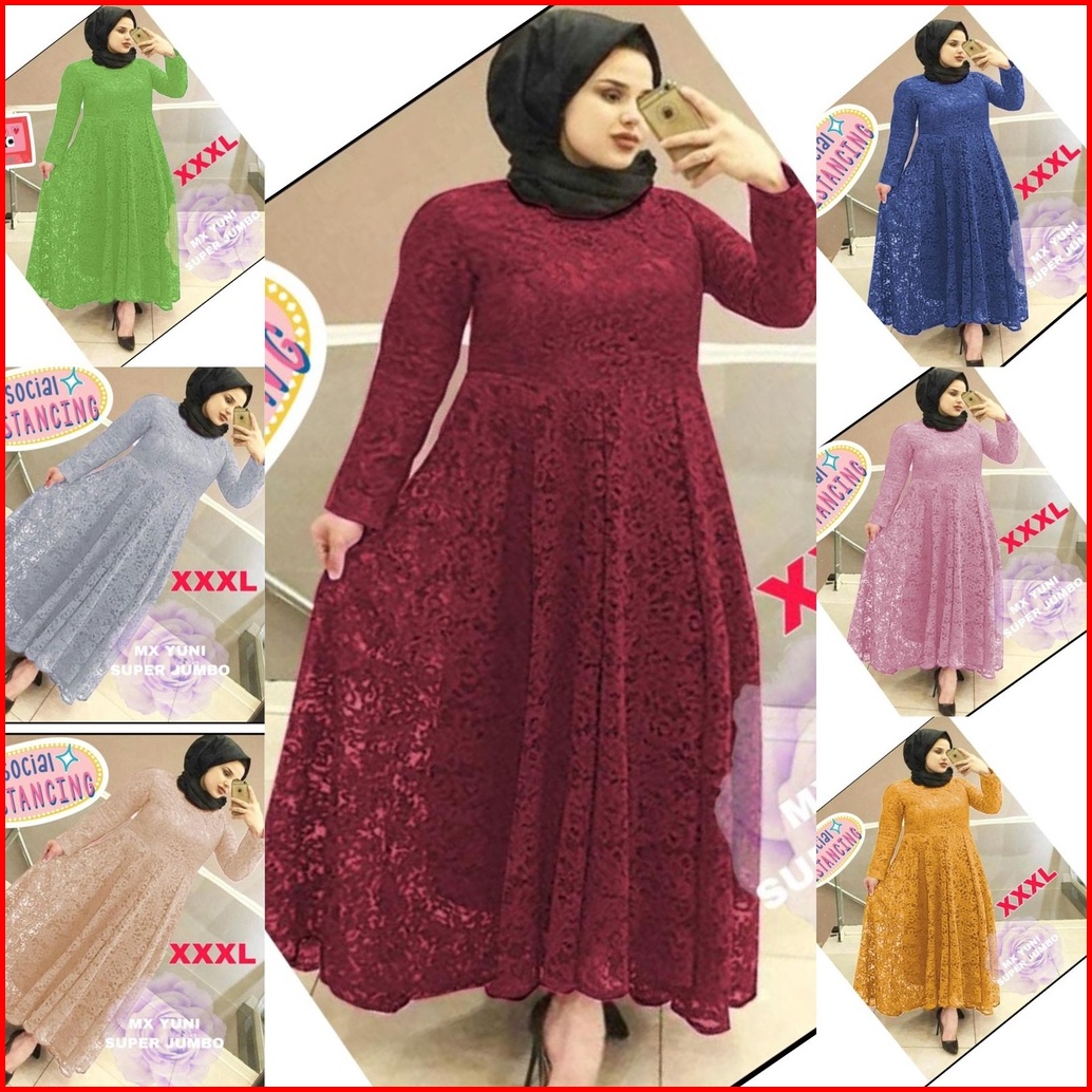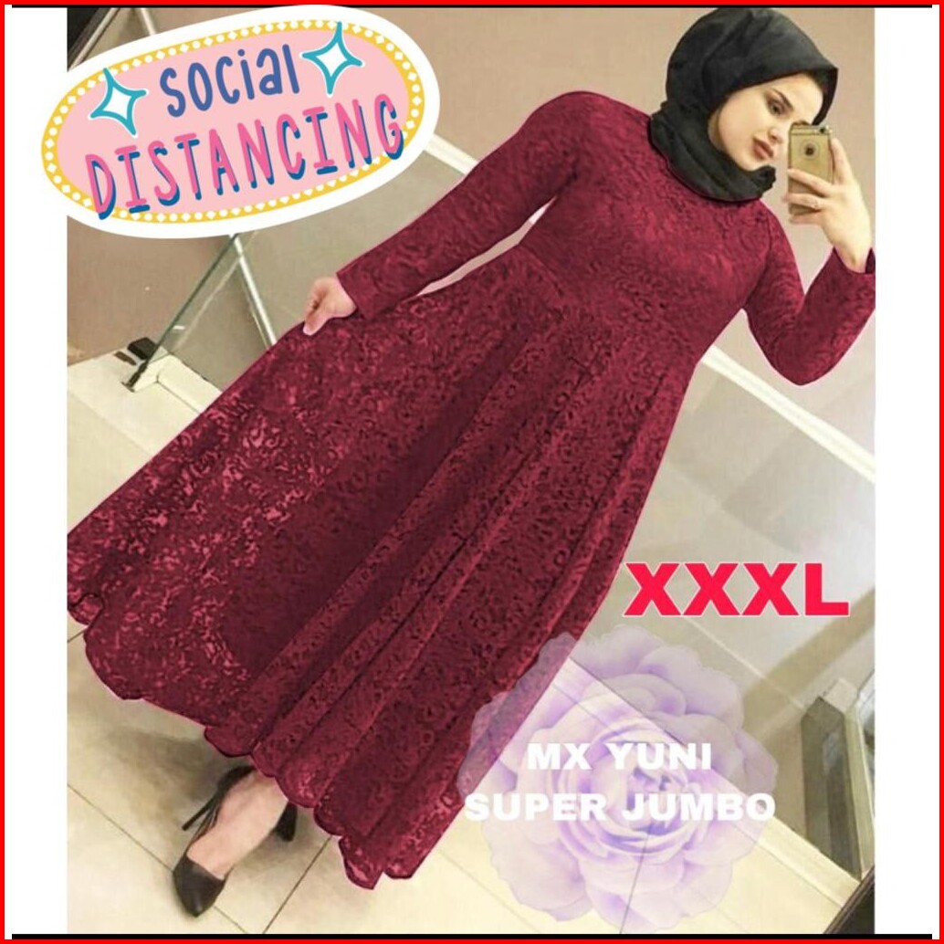 Jamin Realpict Gamis Yuni Brukat Tebal Allsize S -xl Jumbo Xxl Busui Bigsize Maxi Dress Muslim Brukat Tulang Timbul