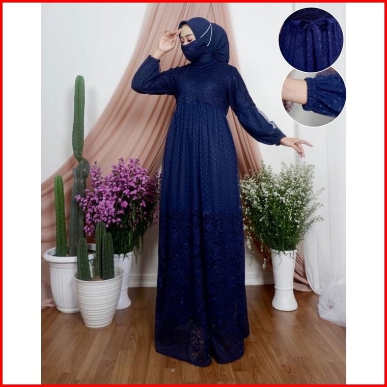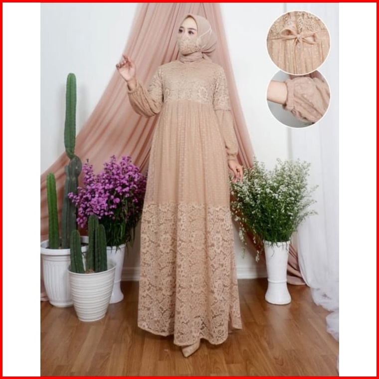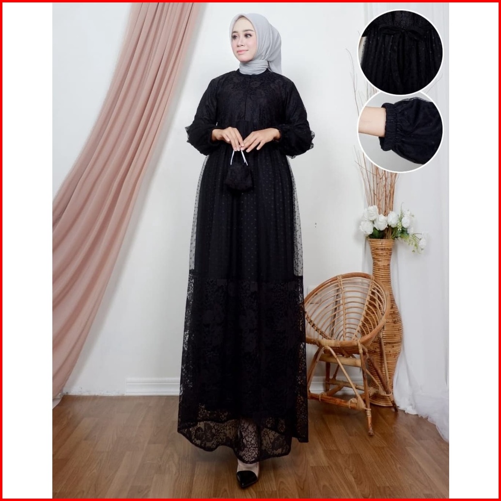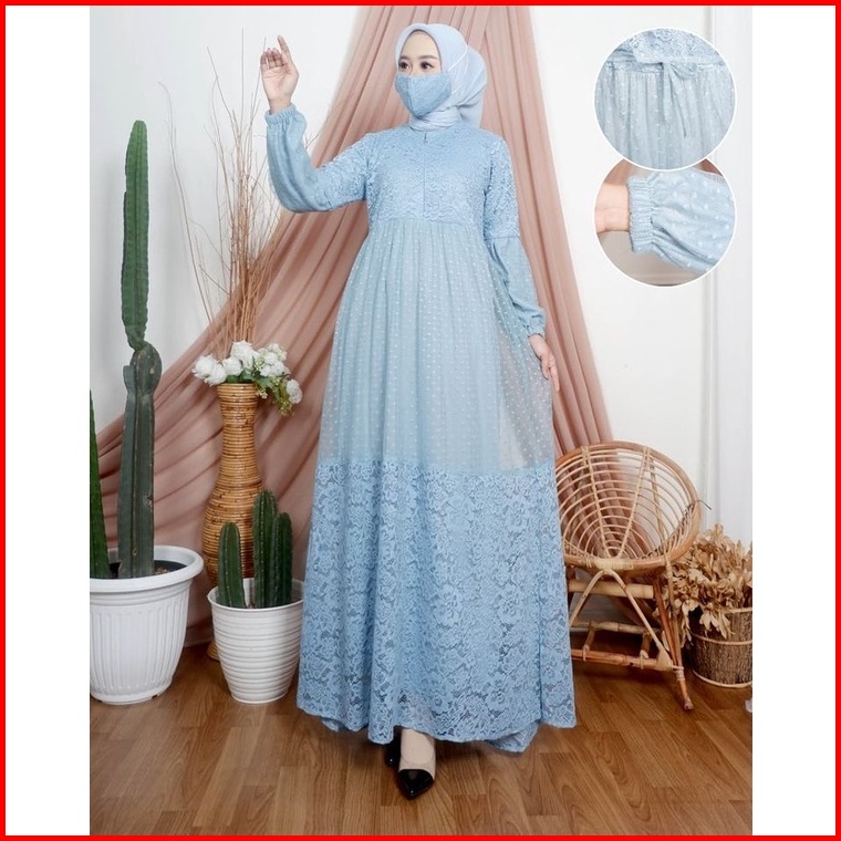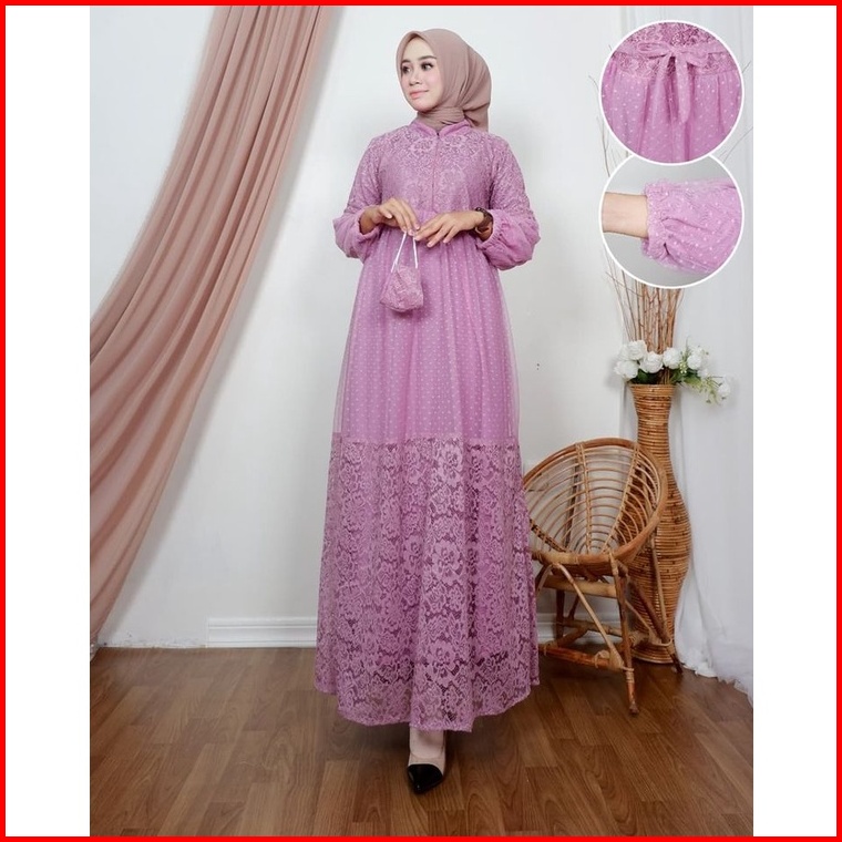 Gamis Brukat Tile Dot Kinanti Jumbo Dress Terbaru Pesta Uk M L Xl Xxl 3xl 4xl 5xl Bahan Premium