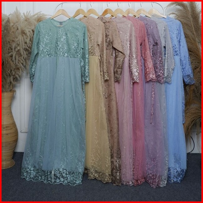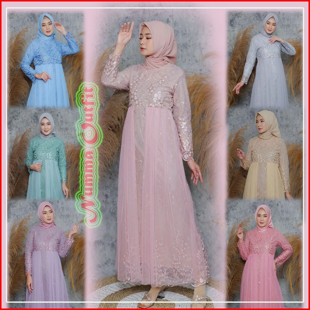 Gamis Brukat Tile Mutiara Kekinian Dress Muslimah Terbaru Gamis Kondangan Terbaru Dress Pesta