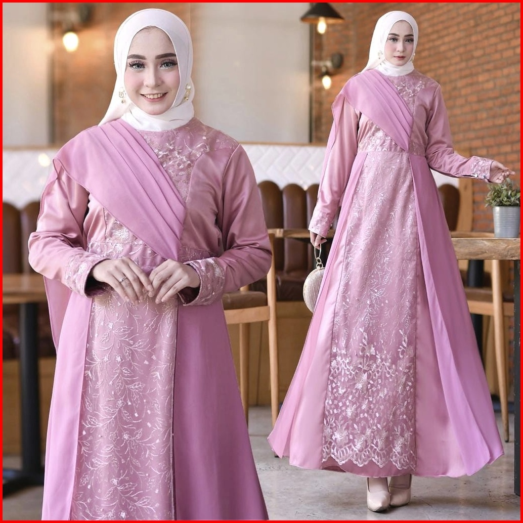 Gamis Saffiya Baju Muslim Wanita Jumbo Gamis Brukat Tile Remaja Dewasa Premium Fashion Gamis Kondangan