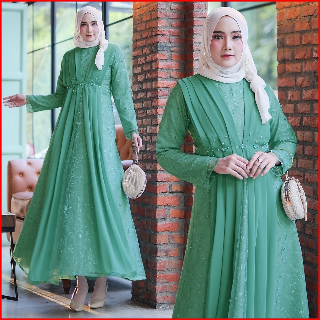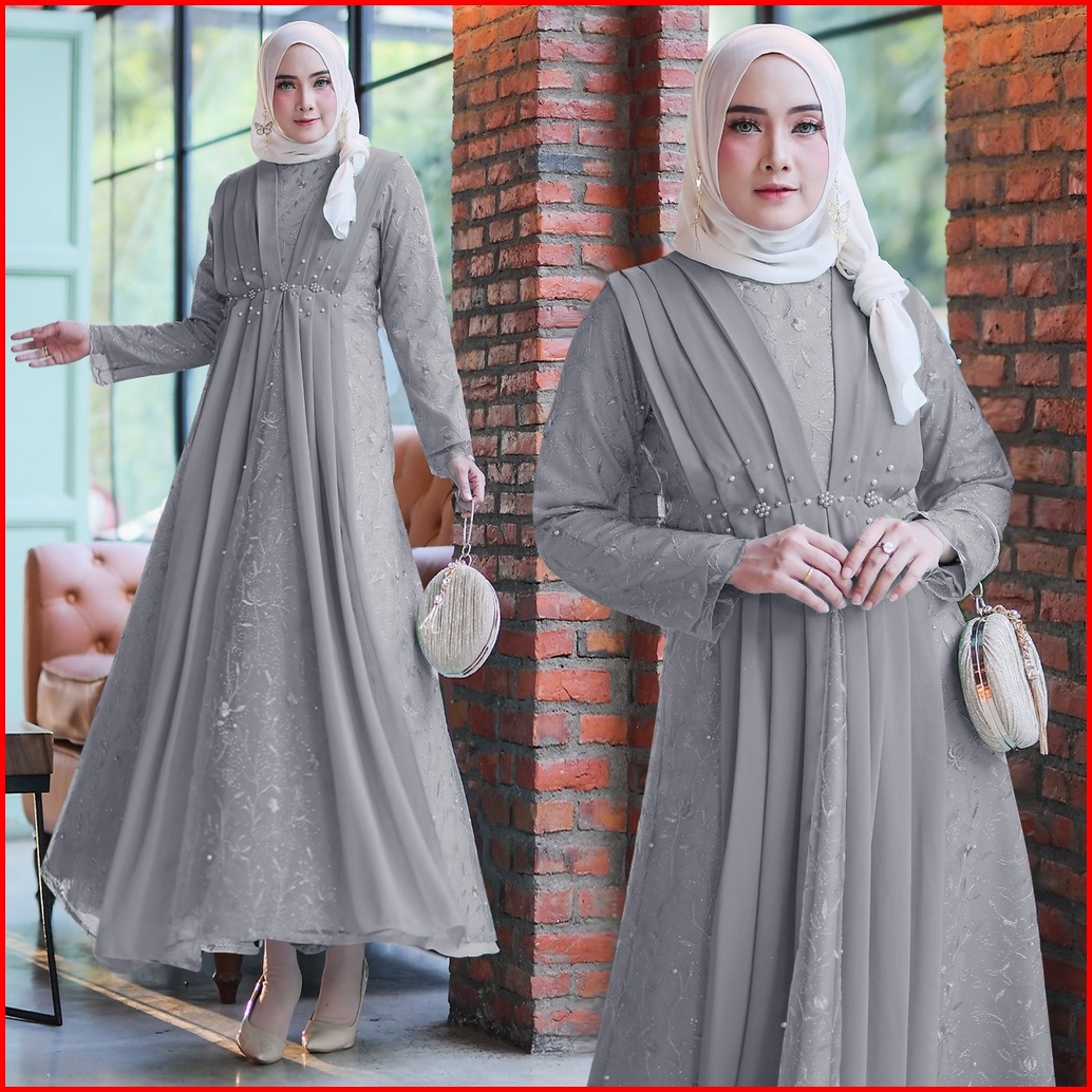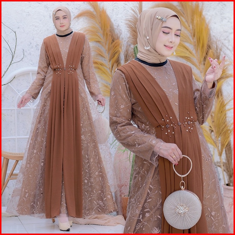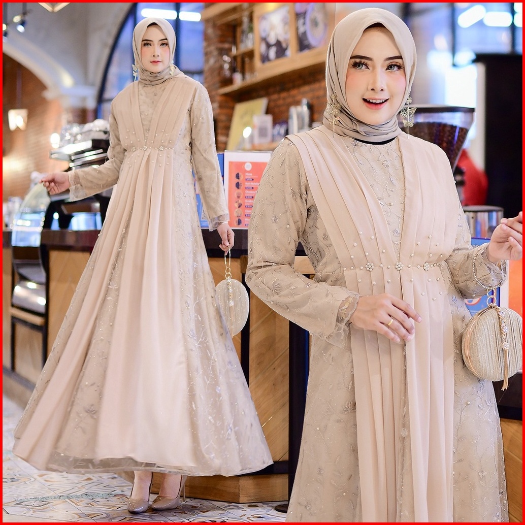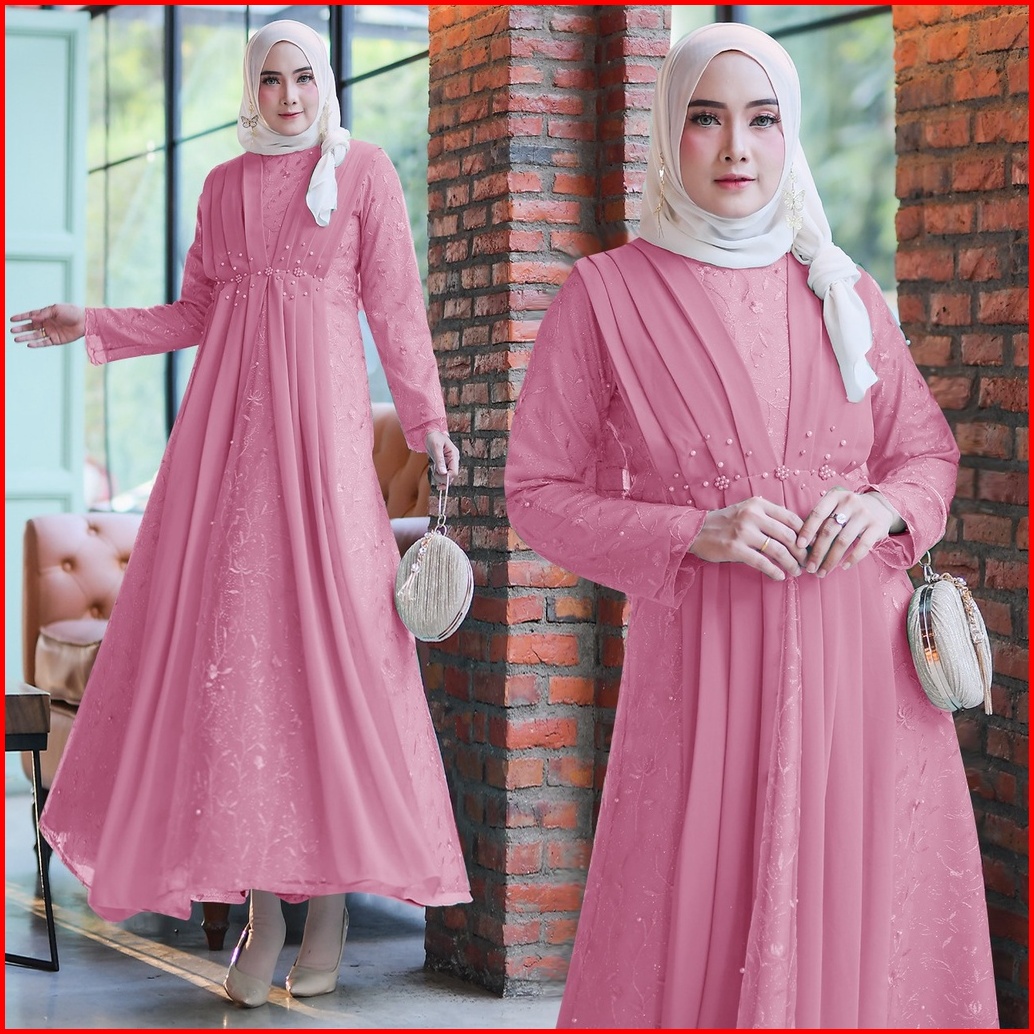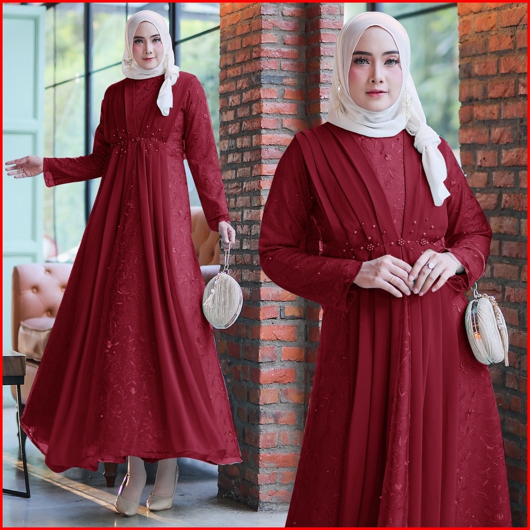 Rumaisha Baju Muslim Wanita Jumbo Gamis Full Brukat Tile Remaja Dewasa Premium Fashion Gamis Kondangan