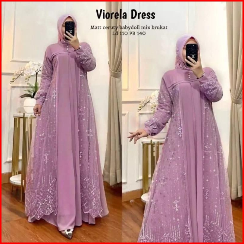 Viorella Dress Gamis Ceruty Babydoll Full Furing Outher Brukat Menyatu Variasi Payet Gamis Kondangan Baju Gamis Seragama