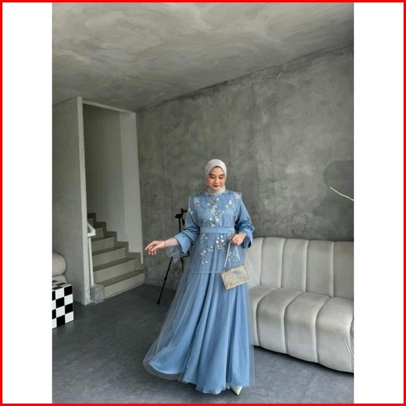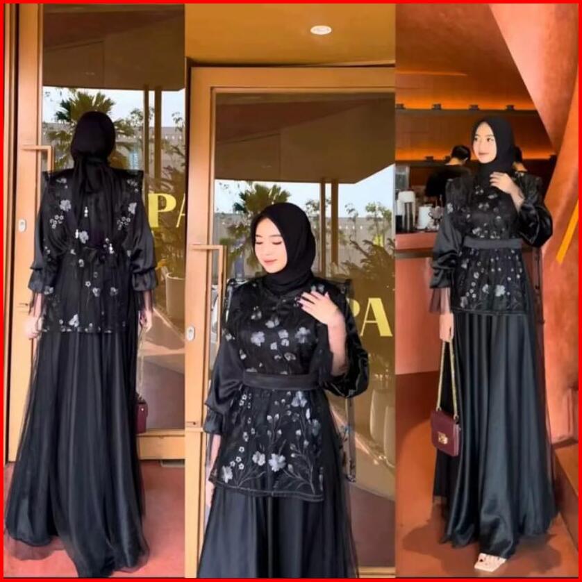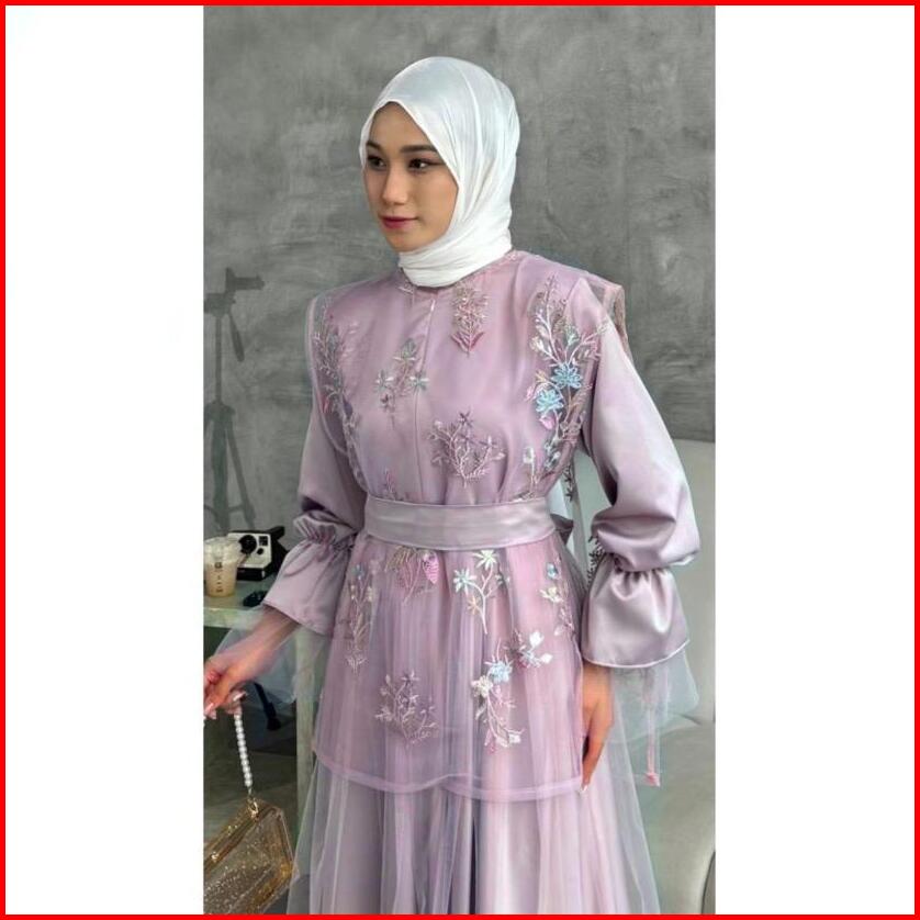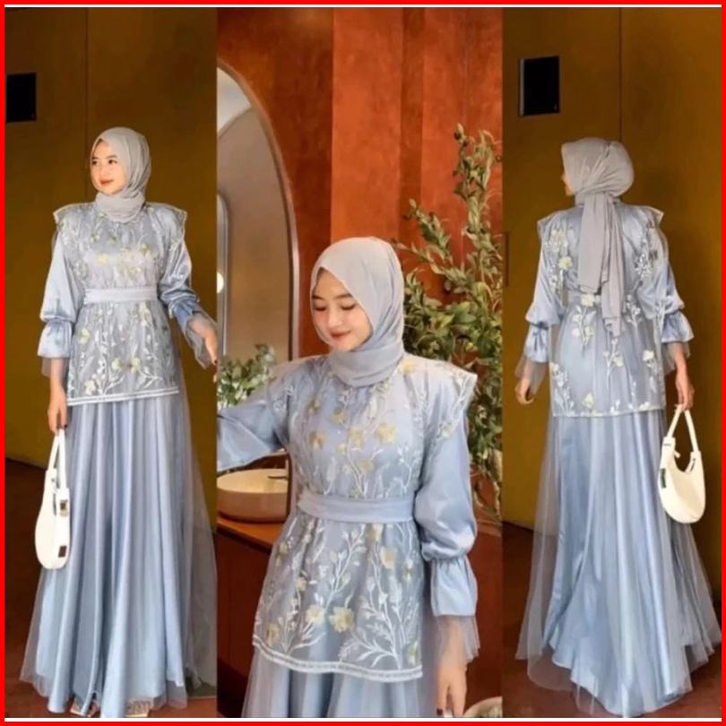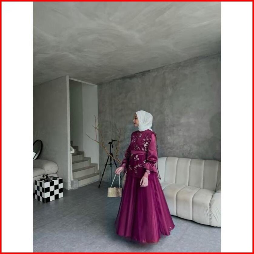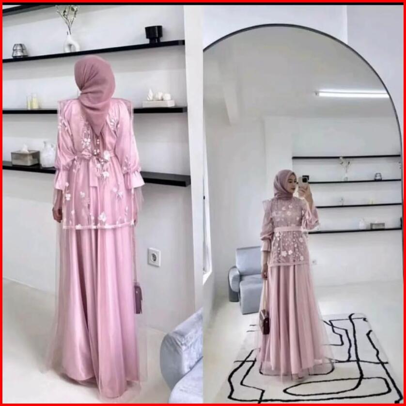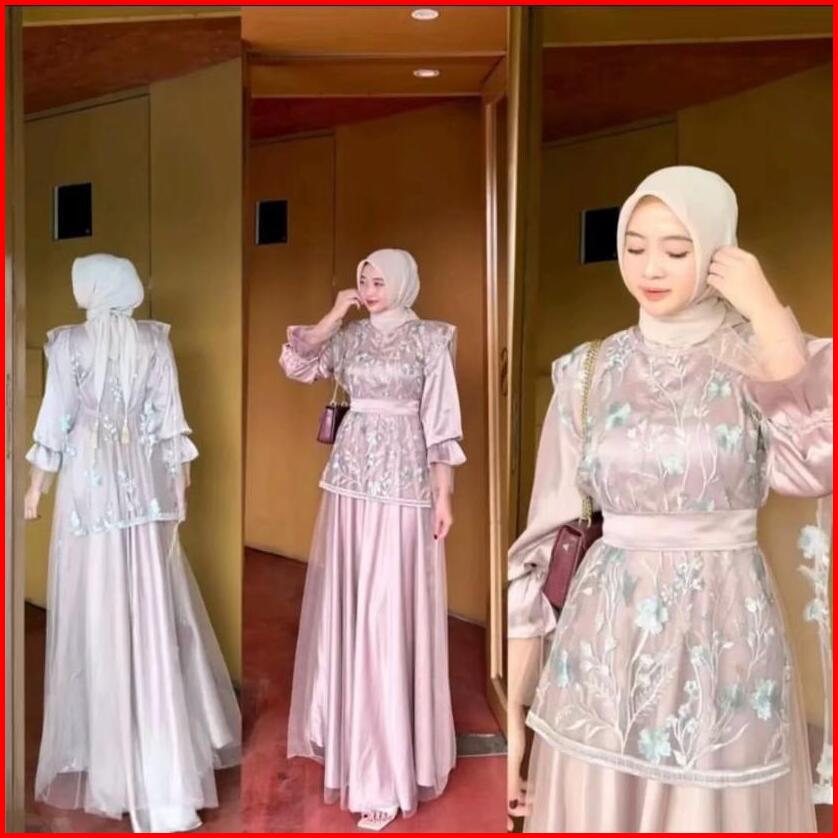 Felarie Set Dress Mix Vest Kain Brukat Tile Garden Gaun Busana Muslim Wanita Remaja Modern Elegan