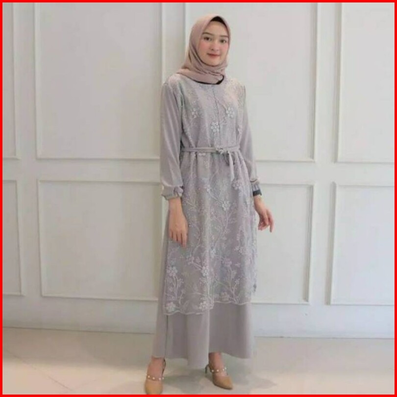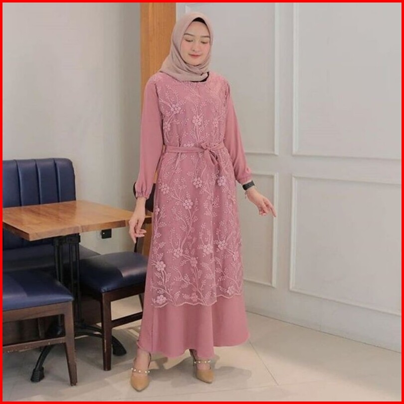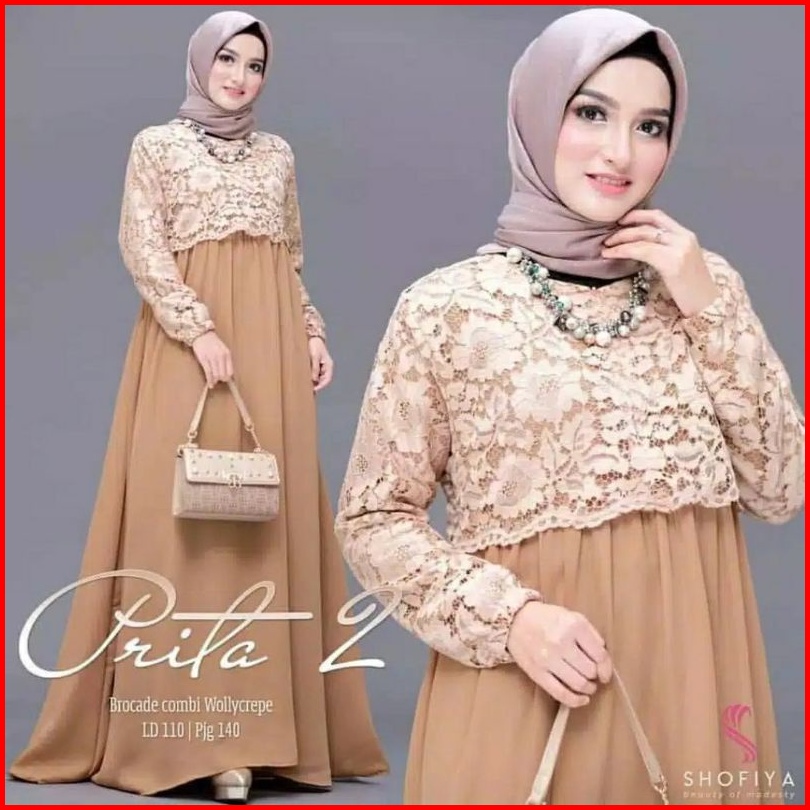Gamis Brokat Kebaya Tile Maxy Dress Busui Wanita Muslim Brocat Miscrepe Terlaris Berkualitas