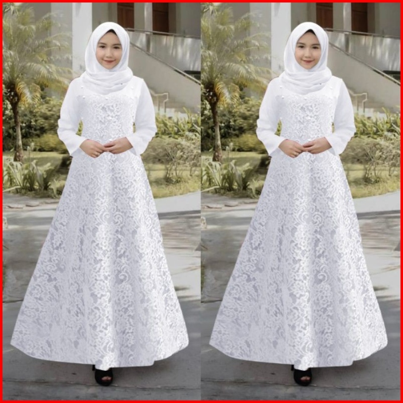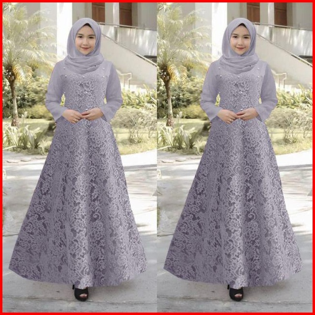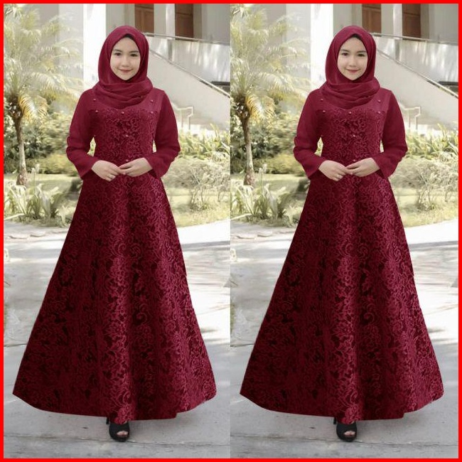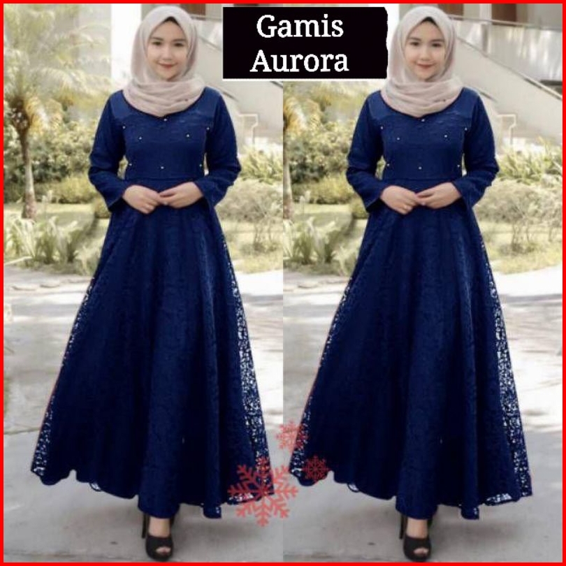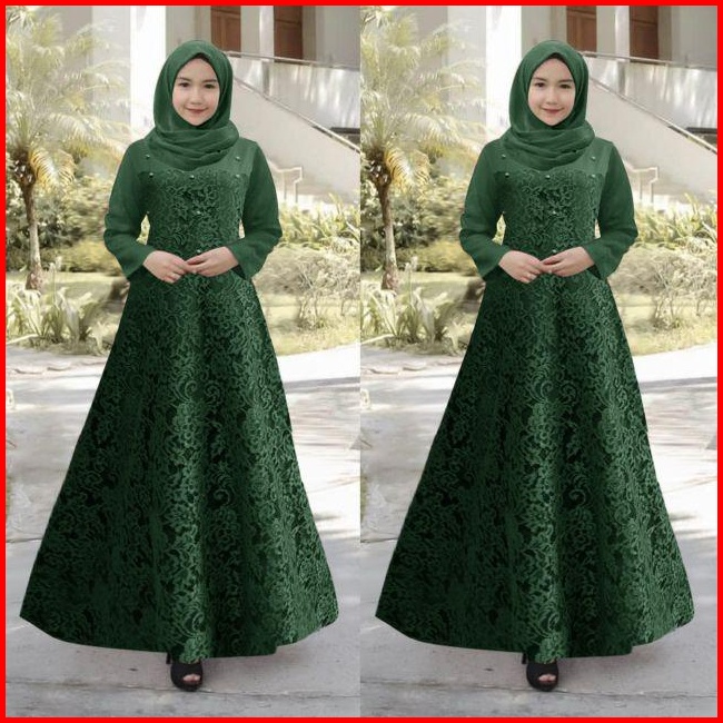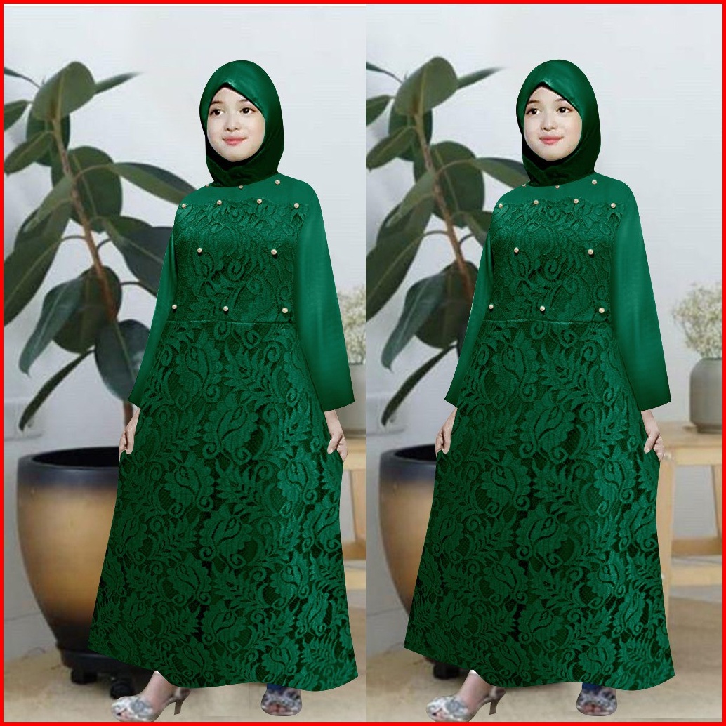 Aurora -dress Gamis Brukat Import S M L Xl Xxl Jumbo Premium Baju Pesta Wanita Umroh Brokat Renda Polos Warna Hijau Ijo