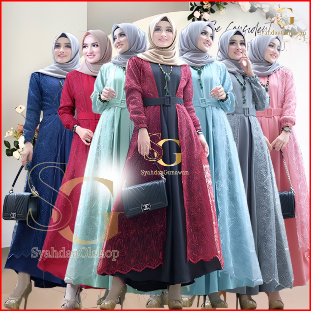 Harga Termurah Gamis Brukat Pearly Dress Brokat 2024 Kekinian Cantik Simpel Elegan Mint Dan Sage Warna Choco Mocca Biru