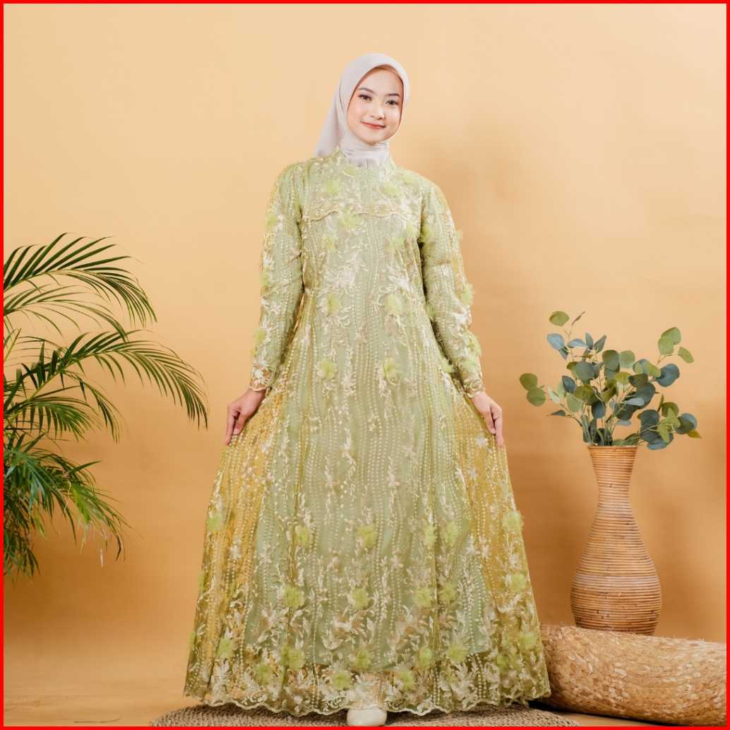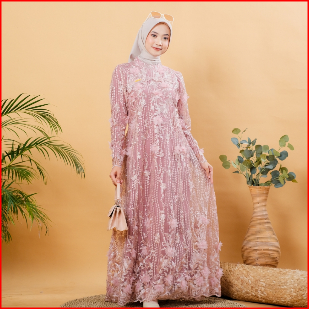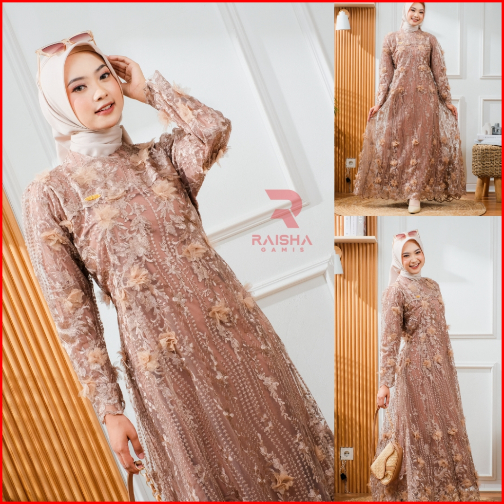 Raisha-assyifa Gamis Brukat Exlusive Payet Untuk Wanita Muslim Dewasa Bahan Full Brokat Depan Belakang Puring Menggunaka