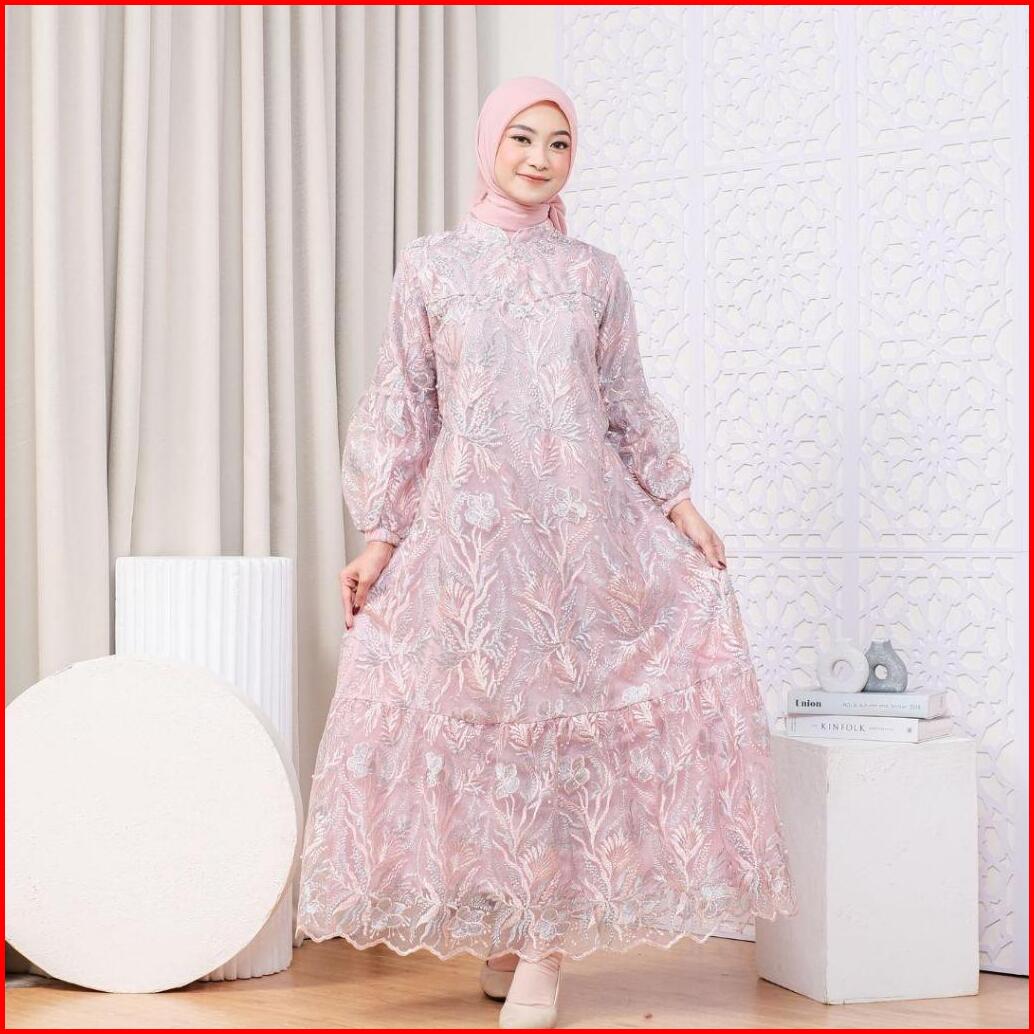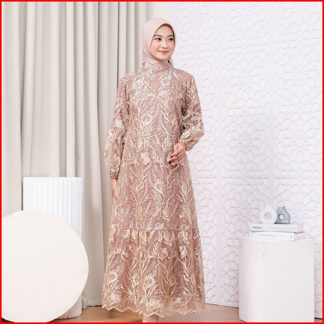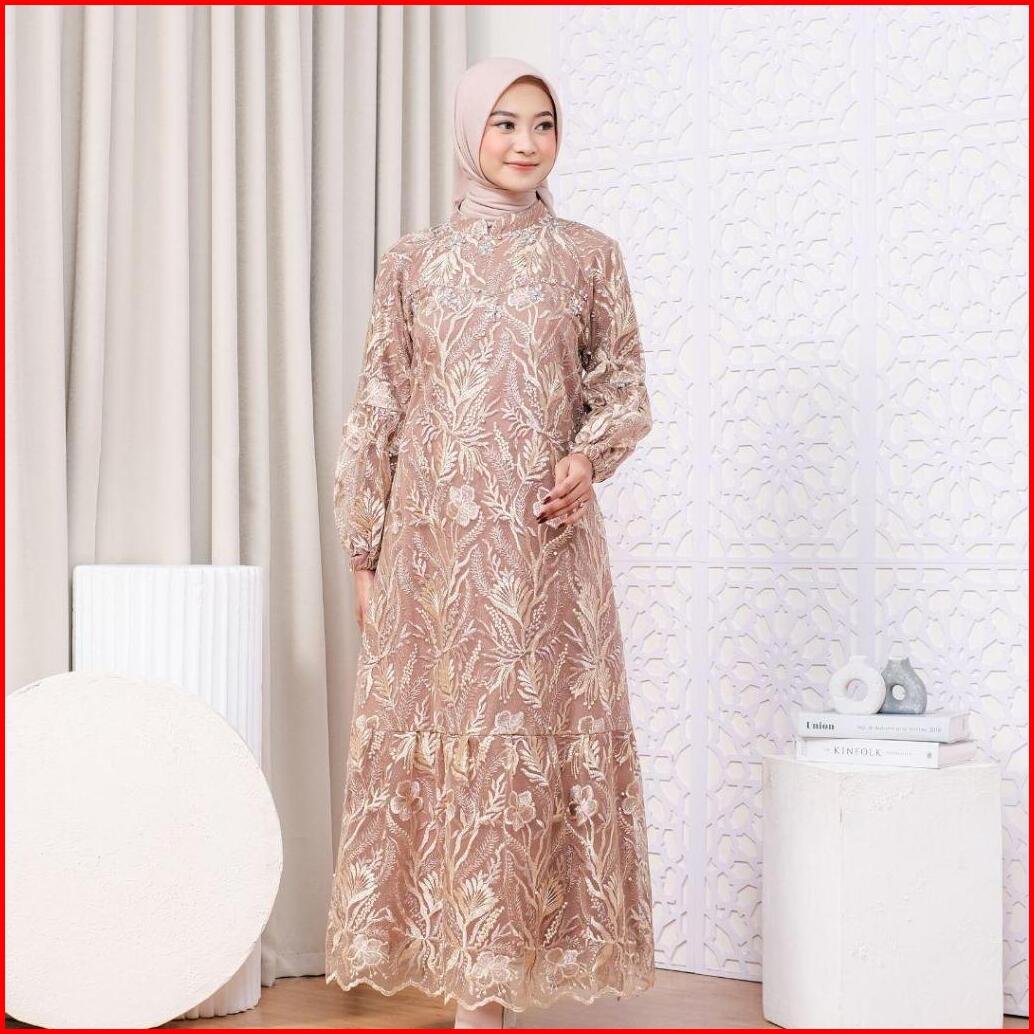 Raisha-gamis Brukat Khadijah Dress Kondangan Exlusive Payet Full Tile Brokat Bordir Keliling Untuk Gamis Kondangan Gamis