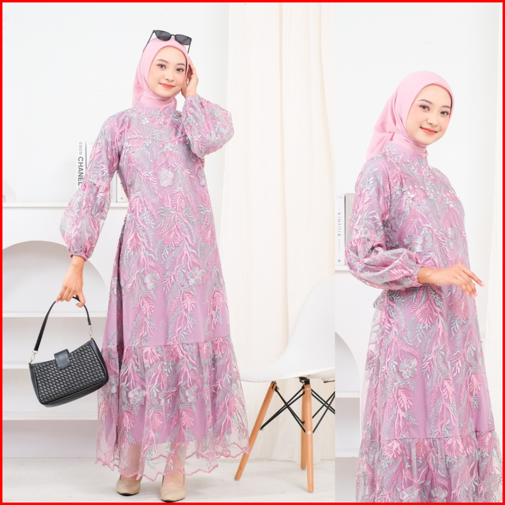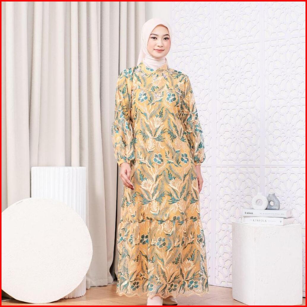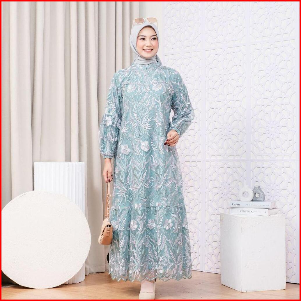 Raisha-gamis Brukat Khadijah Dress Kondangan Exlusive Payet Full Tile Brokat Bordir Keliling Untuk Gamis Kondangan Gamis
