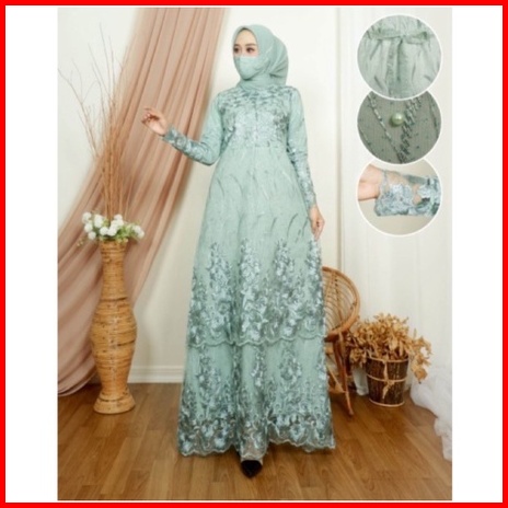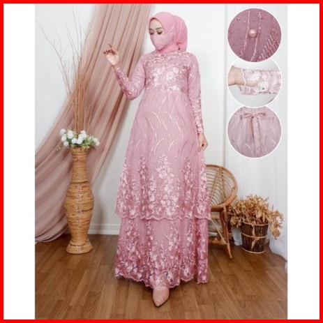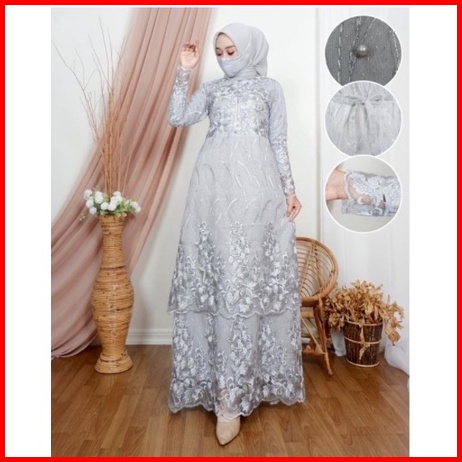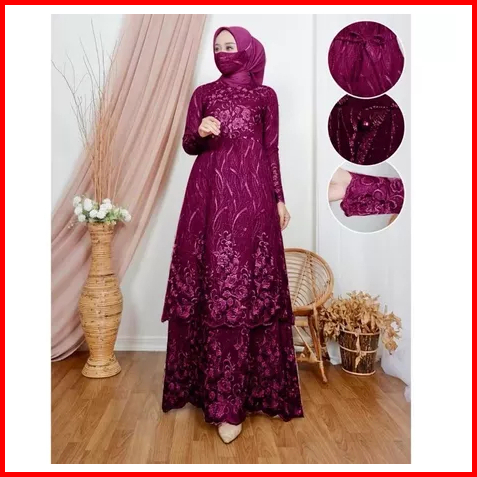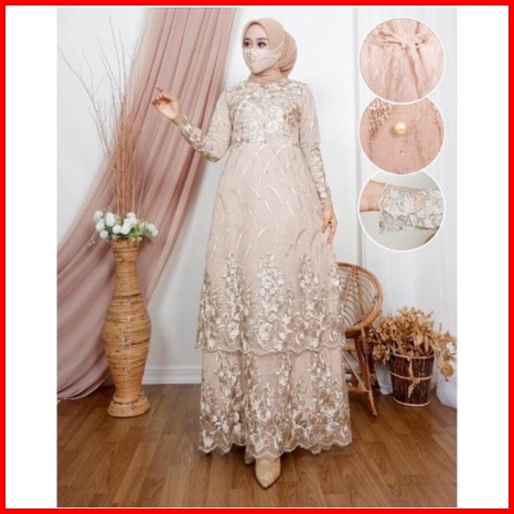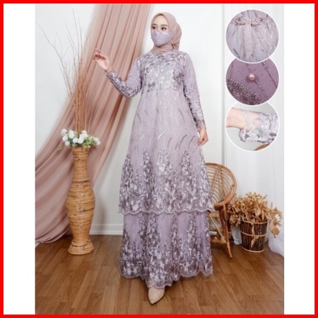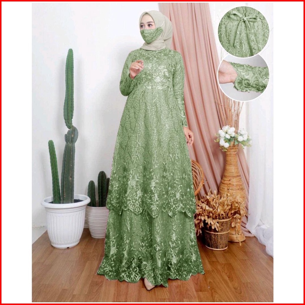 Gamis Busui Tile Tingkat Full Brukat Gamis Maxi Sadira Maxi Tile Tingkat Free Masker Gamis Muslim Gamis Brukat