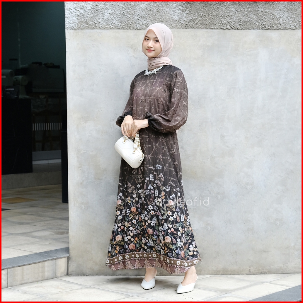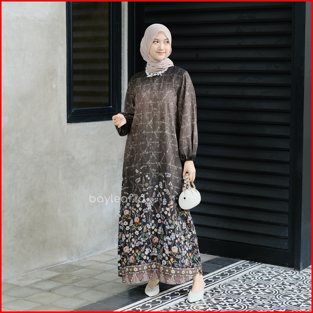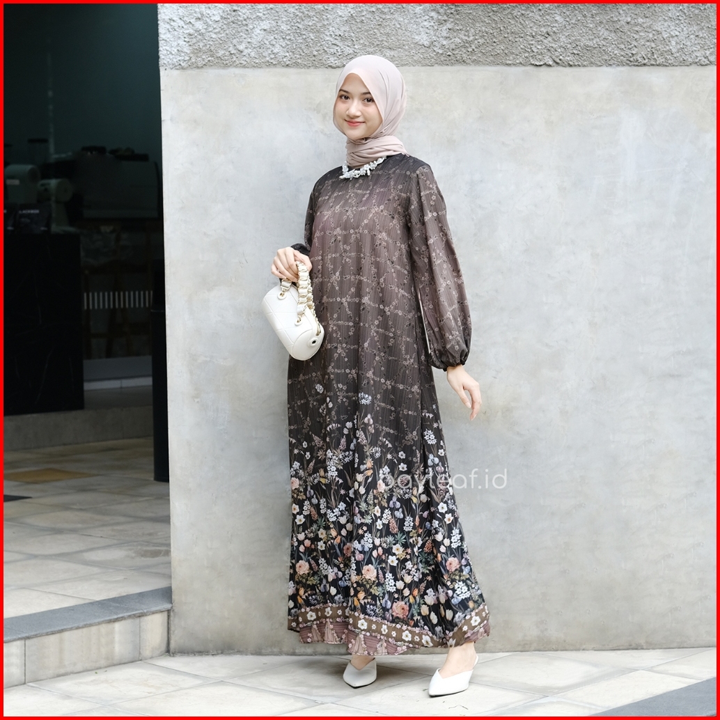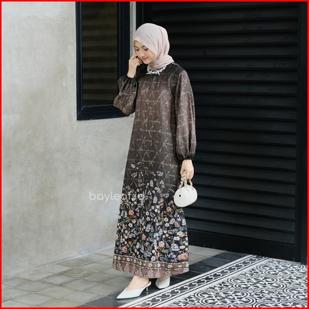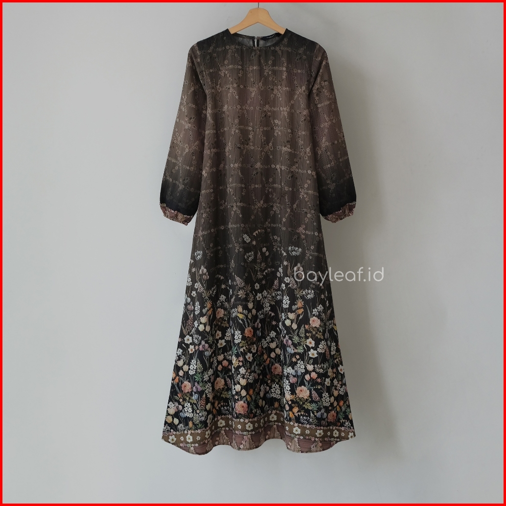 Bayleaf.id Aster Mahalini Maxi Dress Black Gamis Motif Bunga