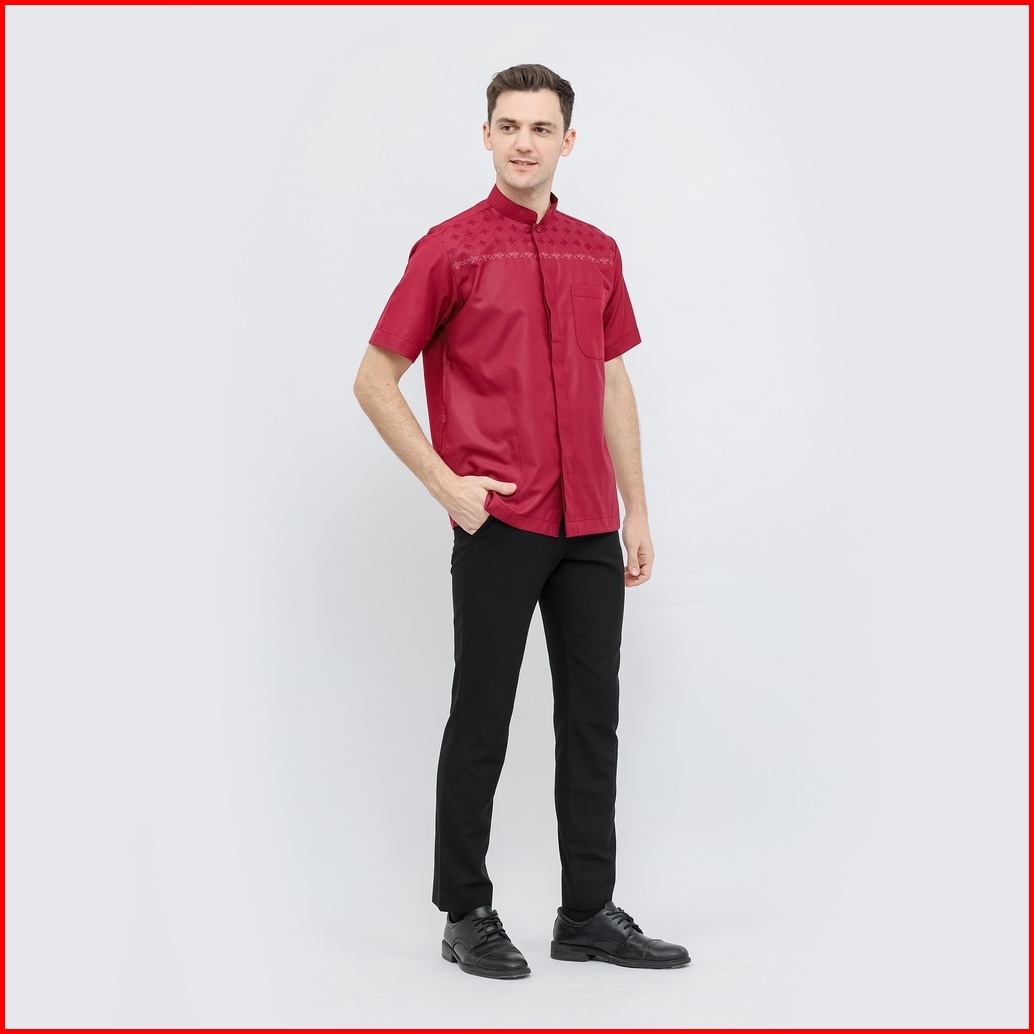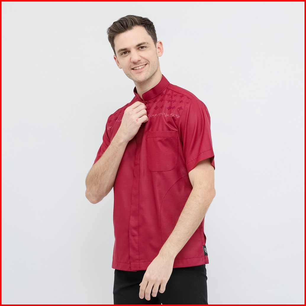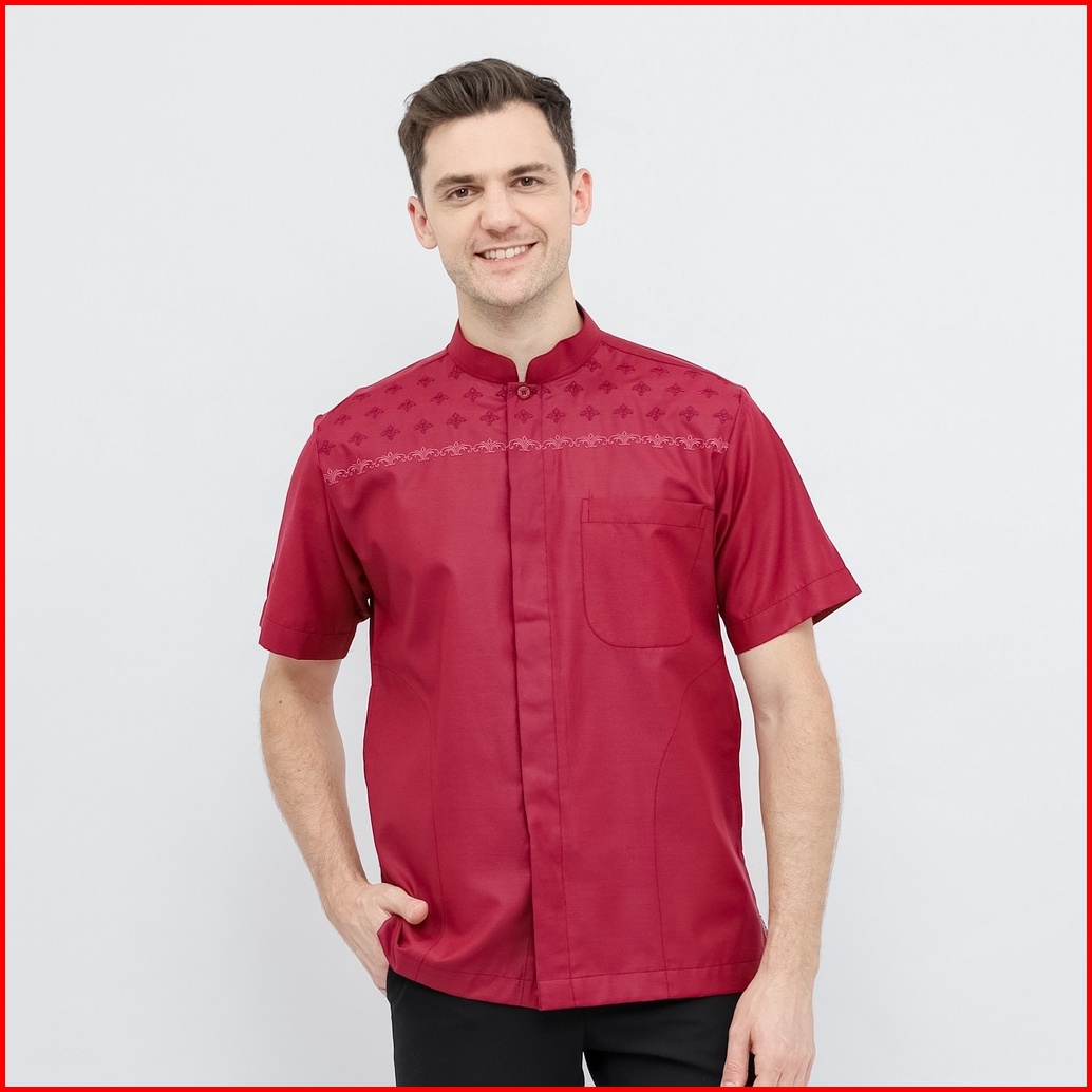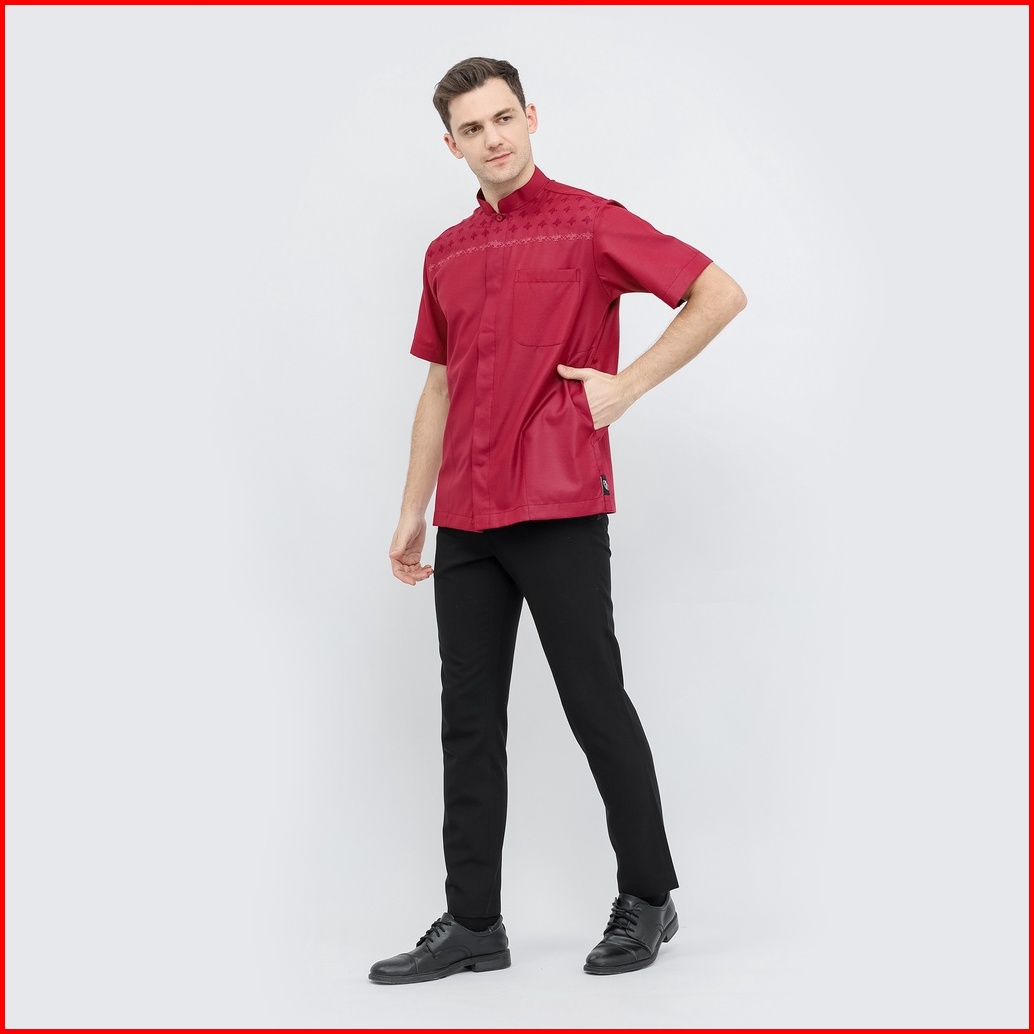 Baju Koko Atlas Universal Motif Mrk Maroon