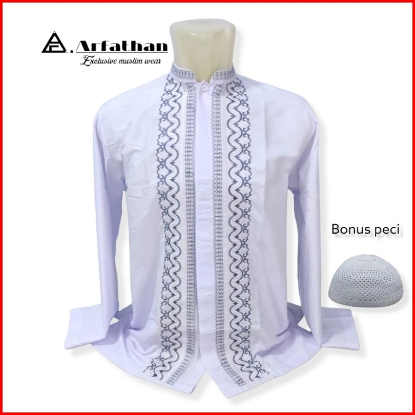 Baju Koko Putih Lengan Panjang Dewasa Baju Muslim Pria Dewasa Motif Bordir Terbaru Arfathan Arf301