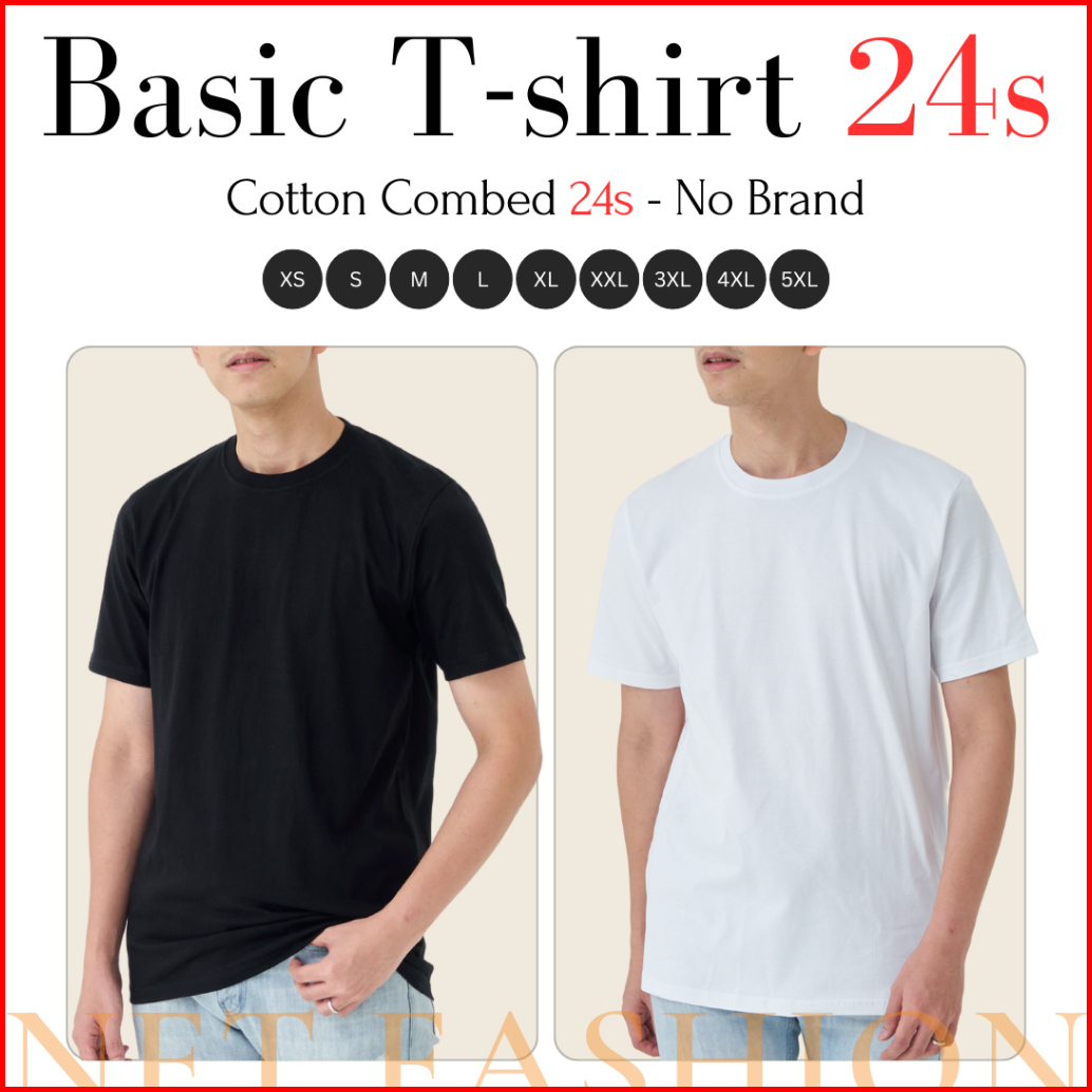 Kaos Polos Premium Cotton Combed 24s Reguler Fit T-shirt Oneck Pria Wanita Lengan Pendek - Black Hitam White Puti