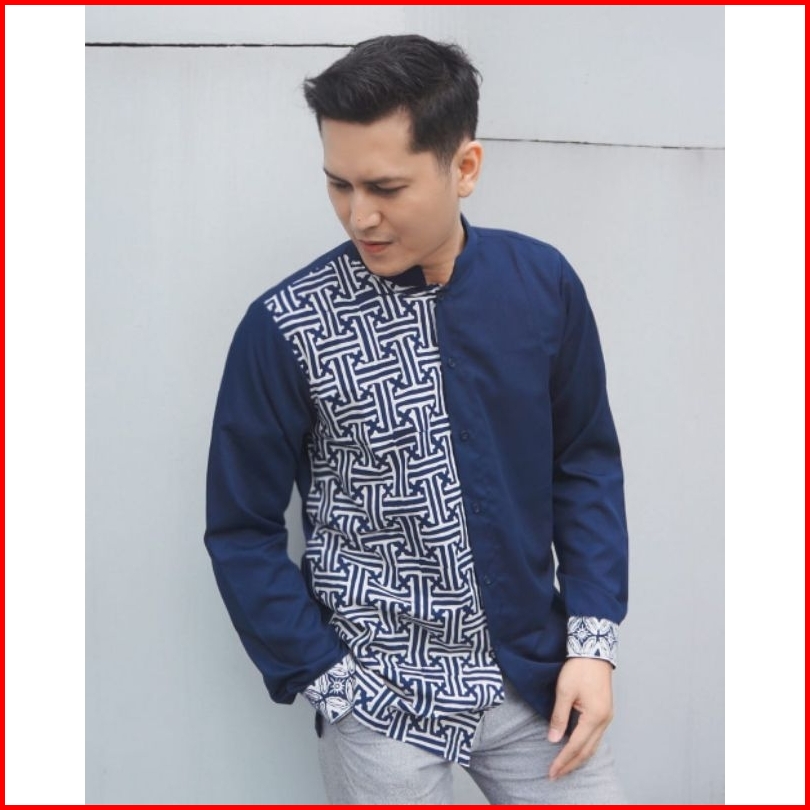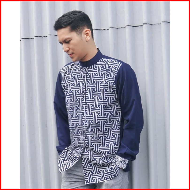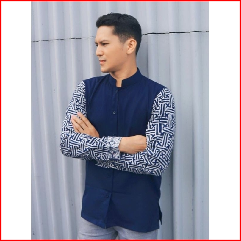 Hindi Navy Koko Kemeja Pria Koko Muslim Batik