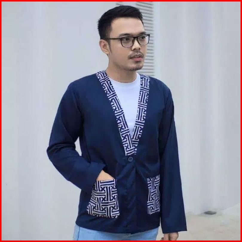 KEMEJA KOKO, KOKO BATIK, KIMONO OUTER, LENGAN BATIK, BLOUSE, KemejaKoko Navy Pdk, KokoBatik Navy Pdk
