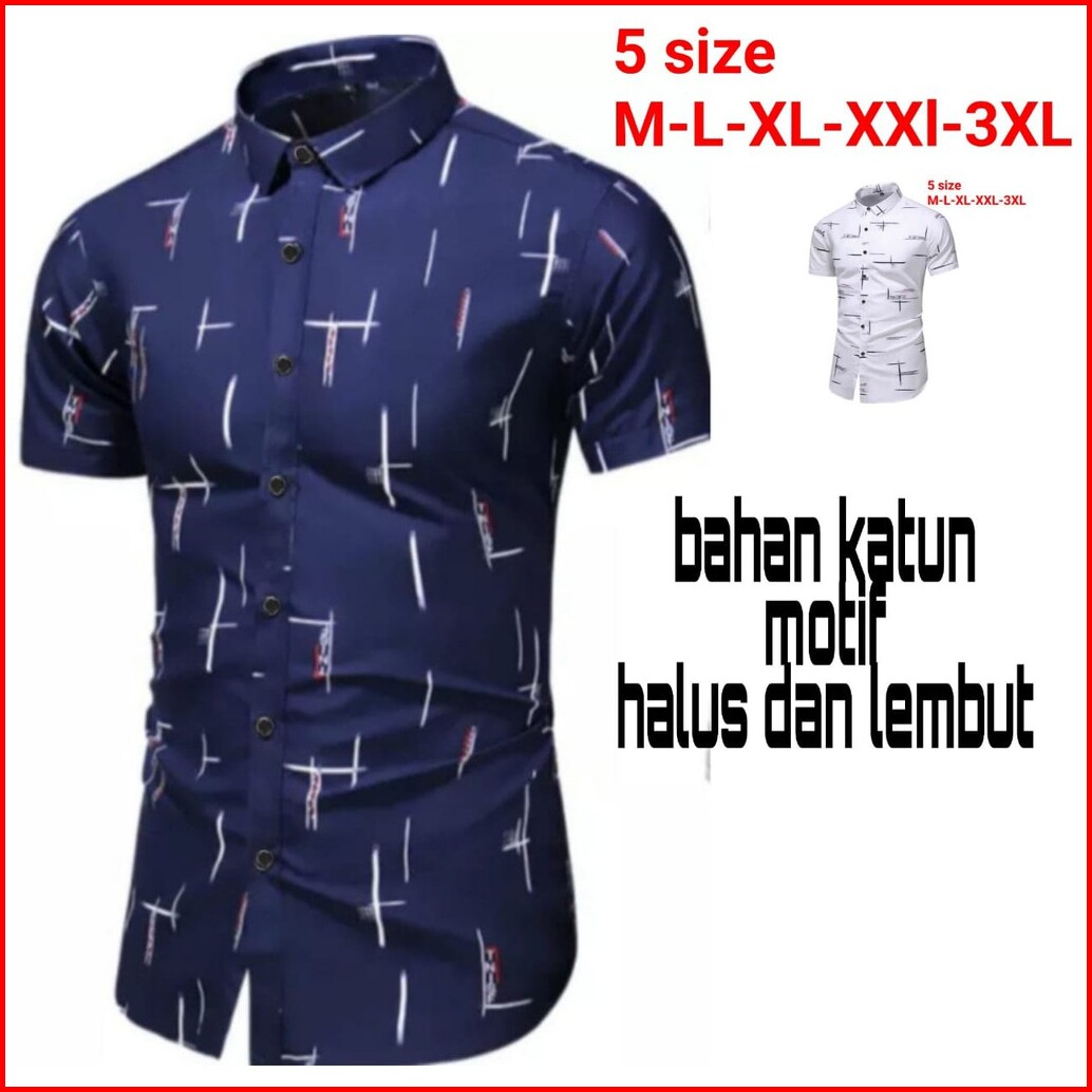 2 Warna 5 Ukuran M-jumbo Kemeja Pria Motif Asli Hem Pria Lengan Pendek Hariston